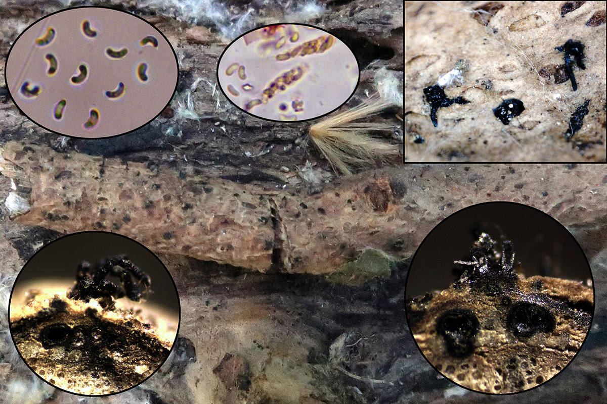 Y buscando la segunda fase de la anterior y sobre Phragmites australis, sin quererlo me encontré con el Arthrinium phragmitis, otro "cromo nuevo"