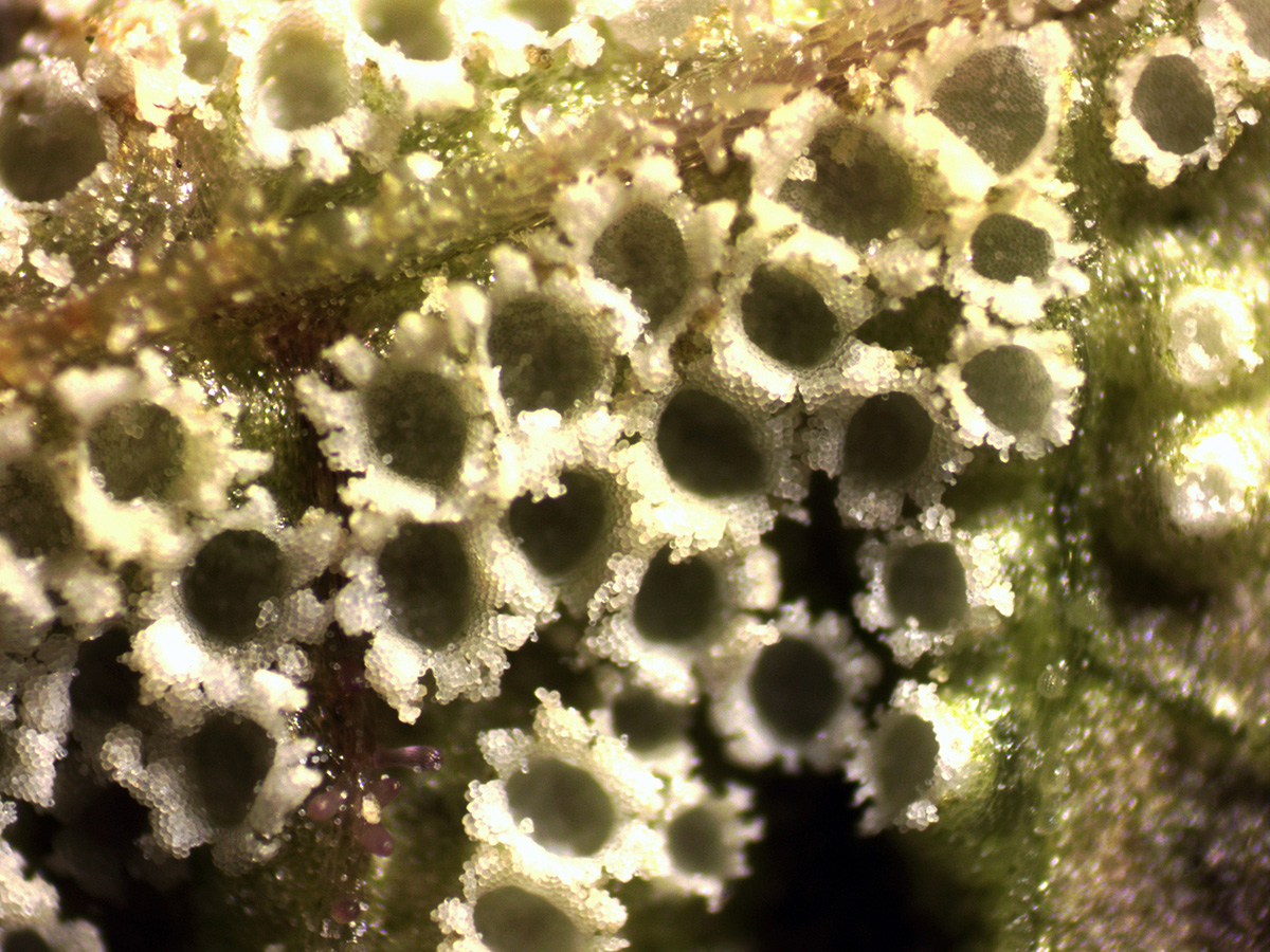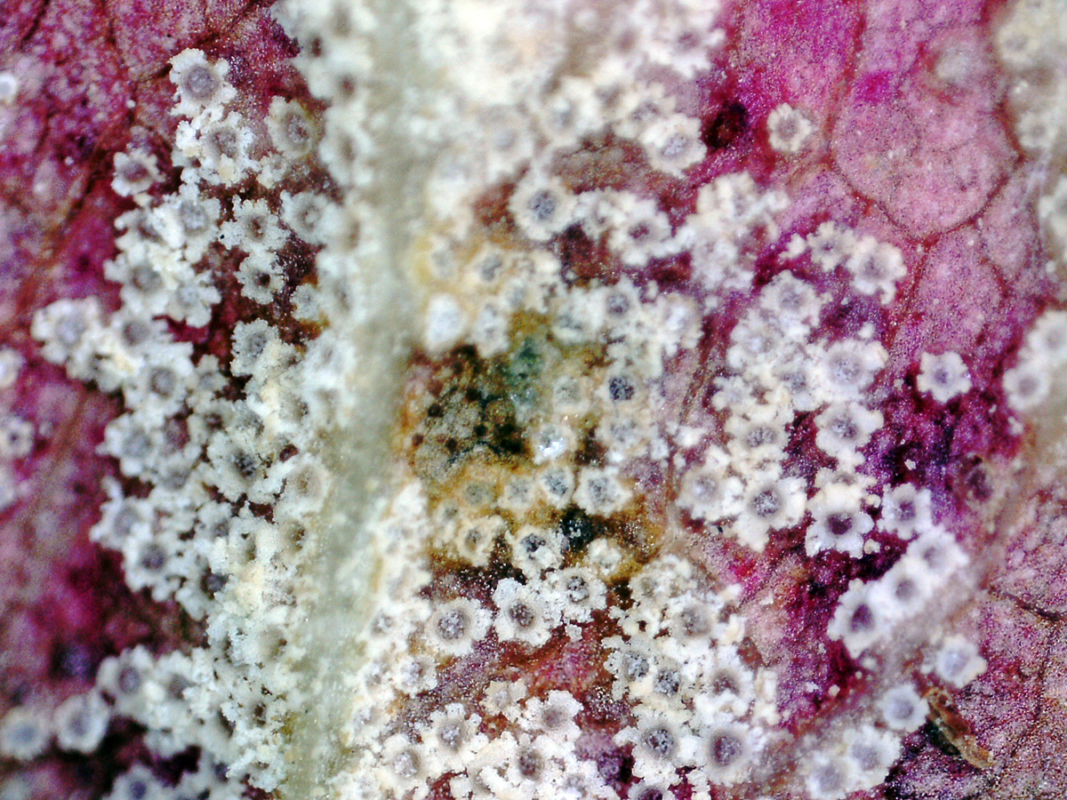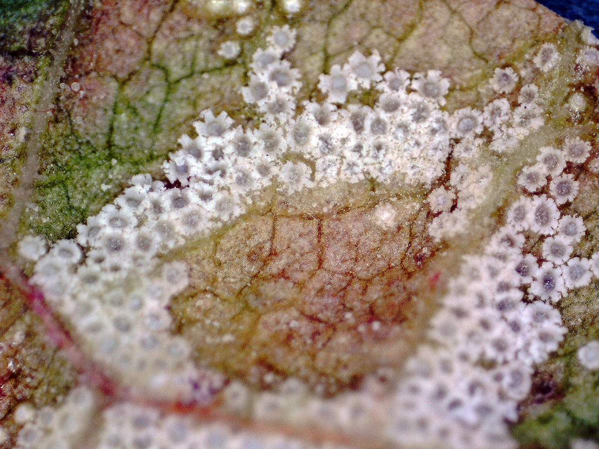 En el envés de la hoja ya se pueden apreciar las fructificaciones de la fase ecial de la misma.