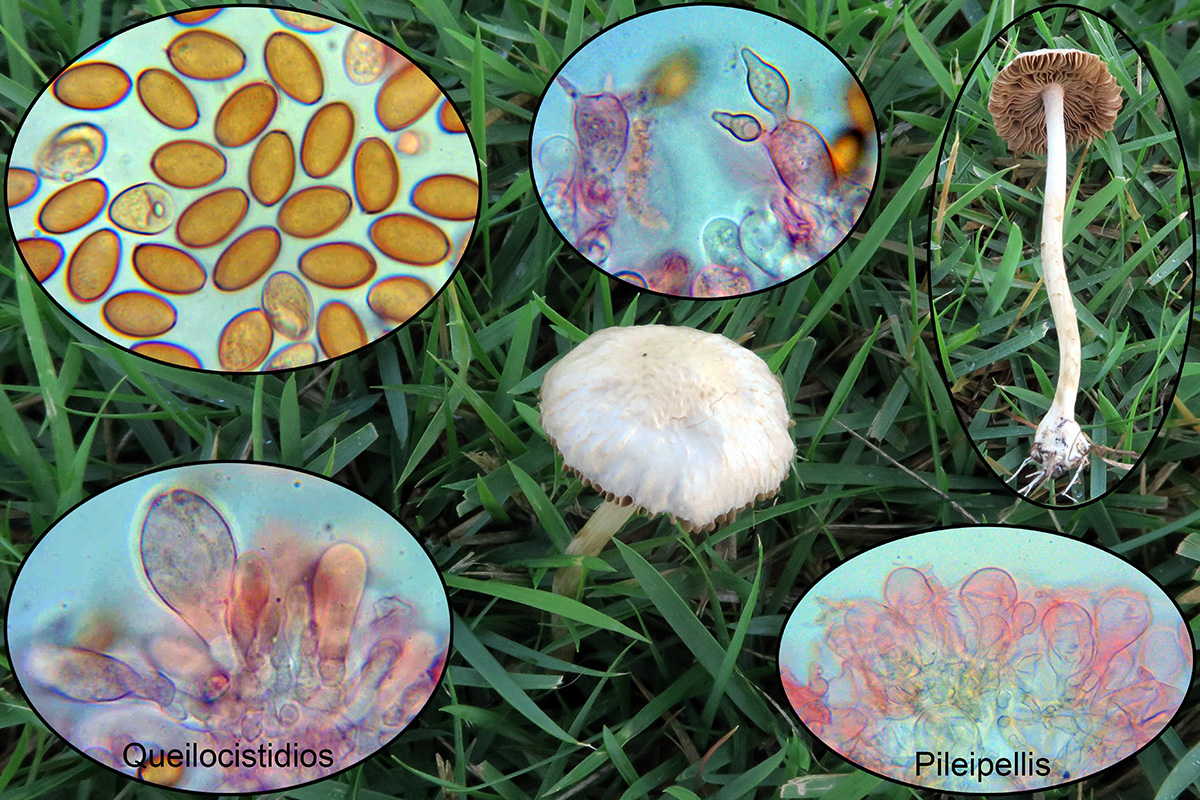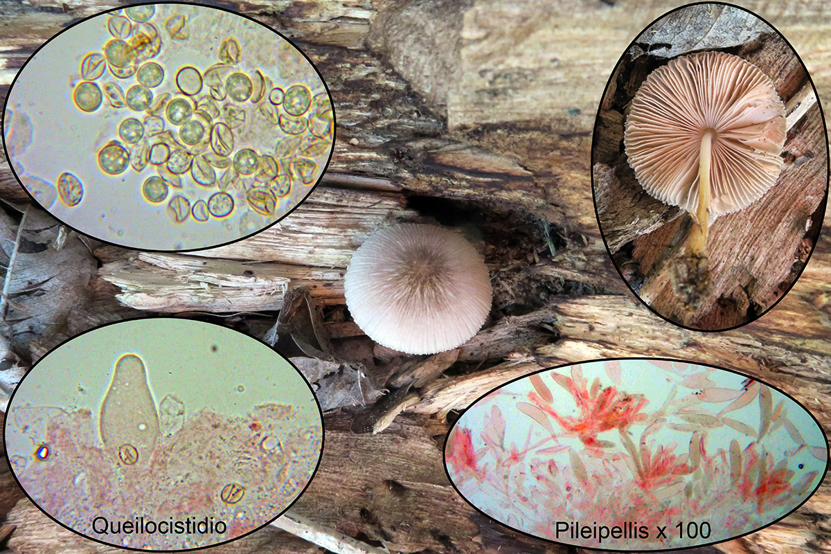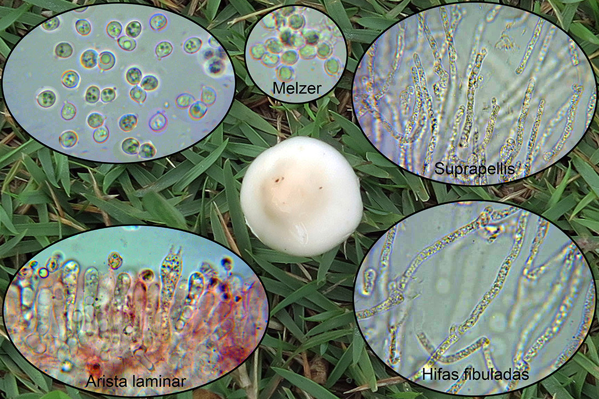 En la microscopía del mismo a destacar la pileipellis fuertemente gelificada, la ausencia de cistidios y sus esporas entre globosas y ovoides con unas medidas de: