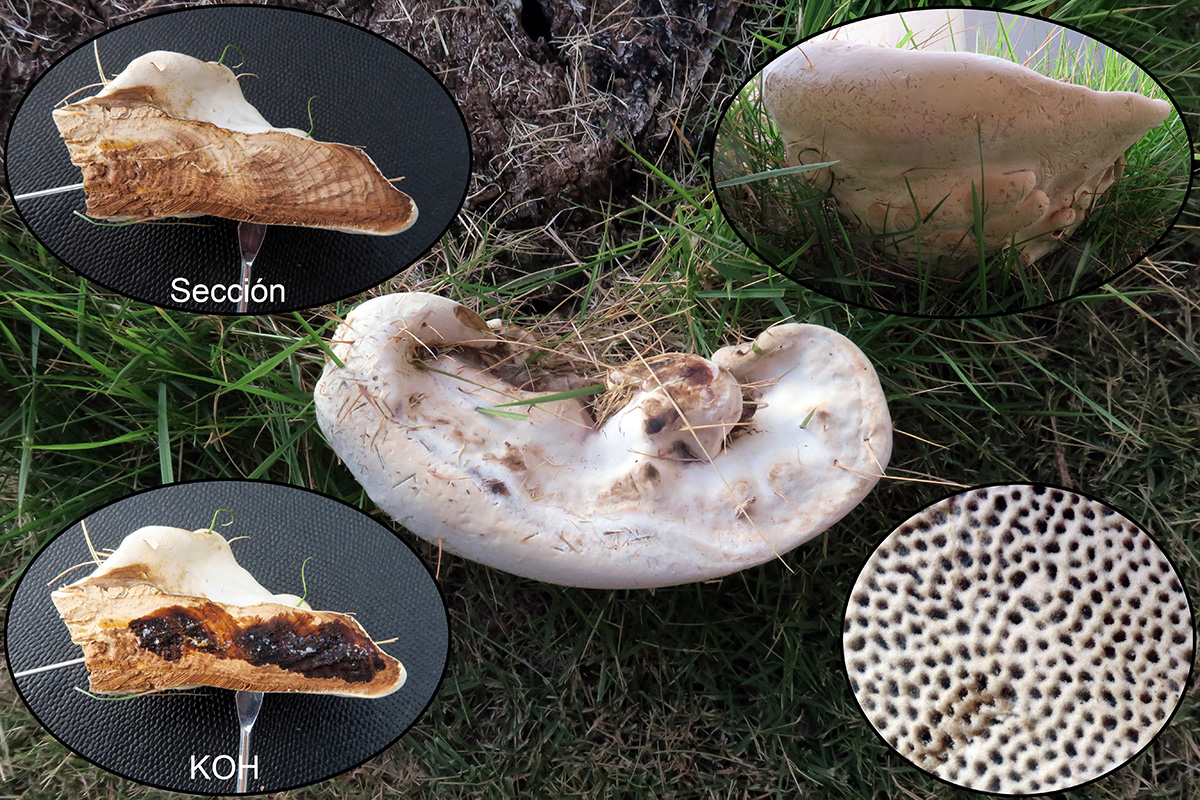 Nota: Si bien por las medidas de los poros encajaría mejor con la Antrodia macra (según Ryvarden de 1,3 a 2 poros por mm. para la Antrodia albida), en mi caso de entre 1,8 a 3, mi estudio encaja a la perfección con el realizado por Mycoquebec 2-3 (4) por mm., además de considerarse la Antrodia macra exclusivamente Europea y asociada a Salix.