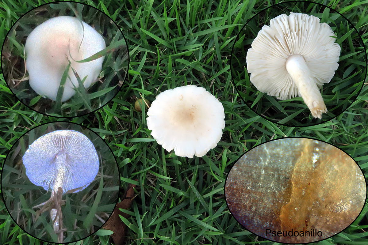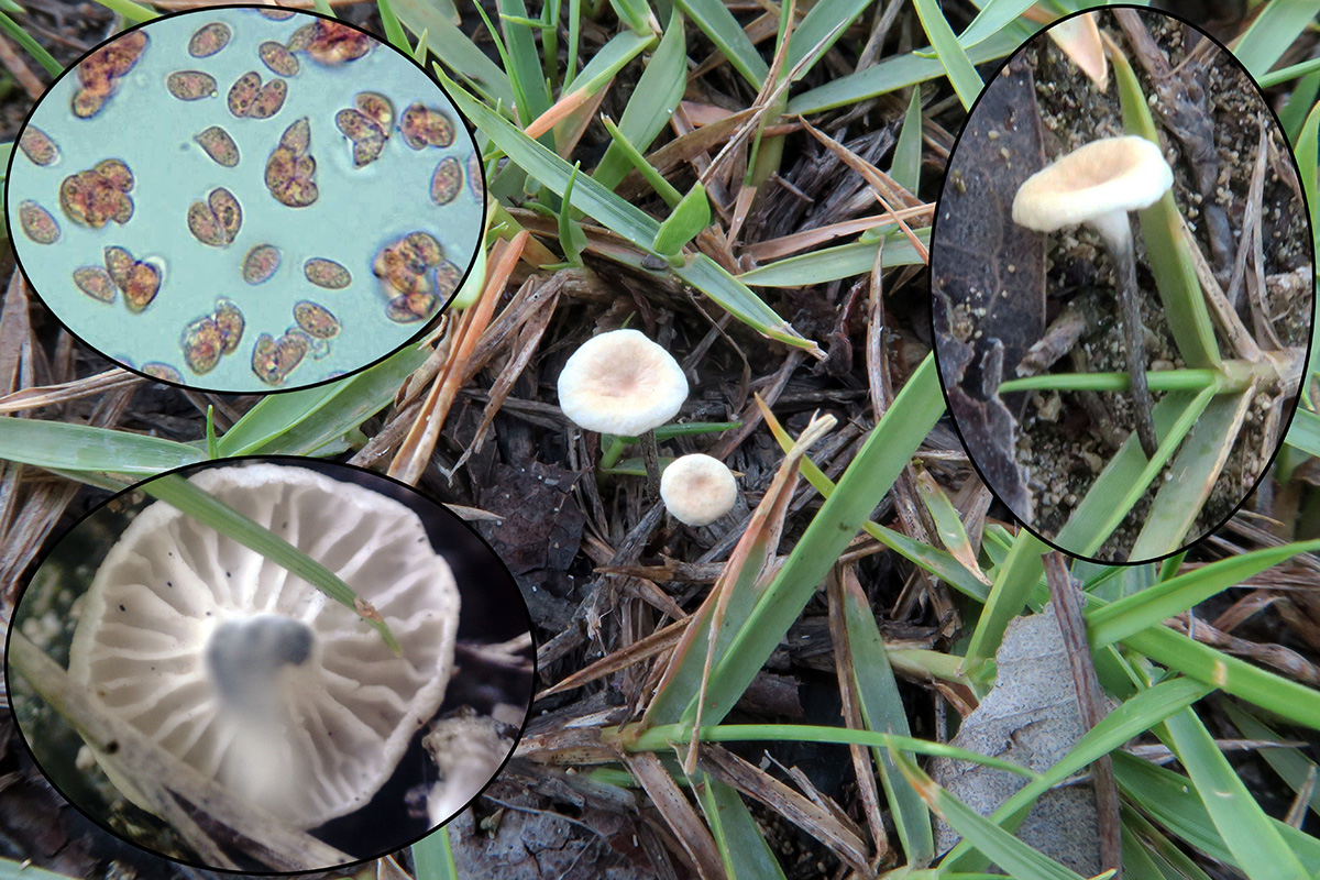 Un Marasmiellus bastante extendido por el césped de la zona, el Marasmiellus tricolor var. graminis = Marasmiellus graminis