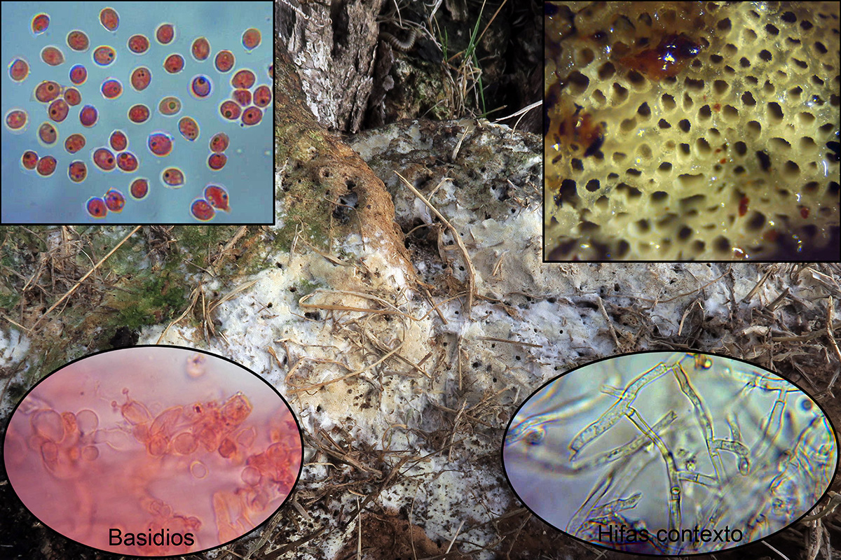 Con abundantes dendrófisis, cistidios cilíndricos y grandes esporas con unas medidas de 13,5;17,1 X 3,6;4,4 µm.