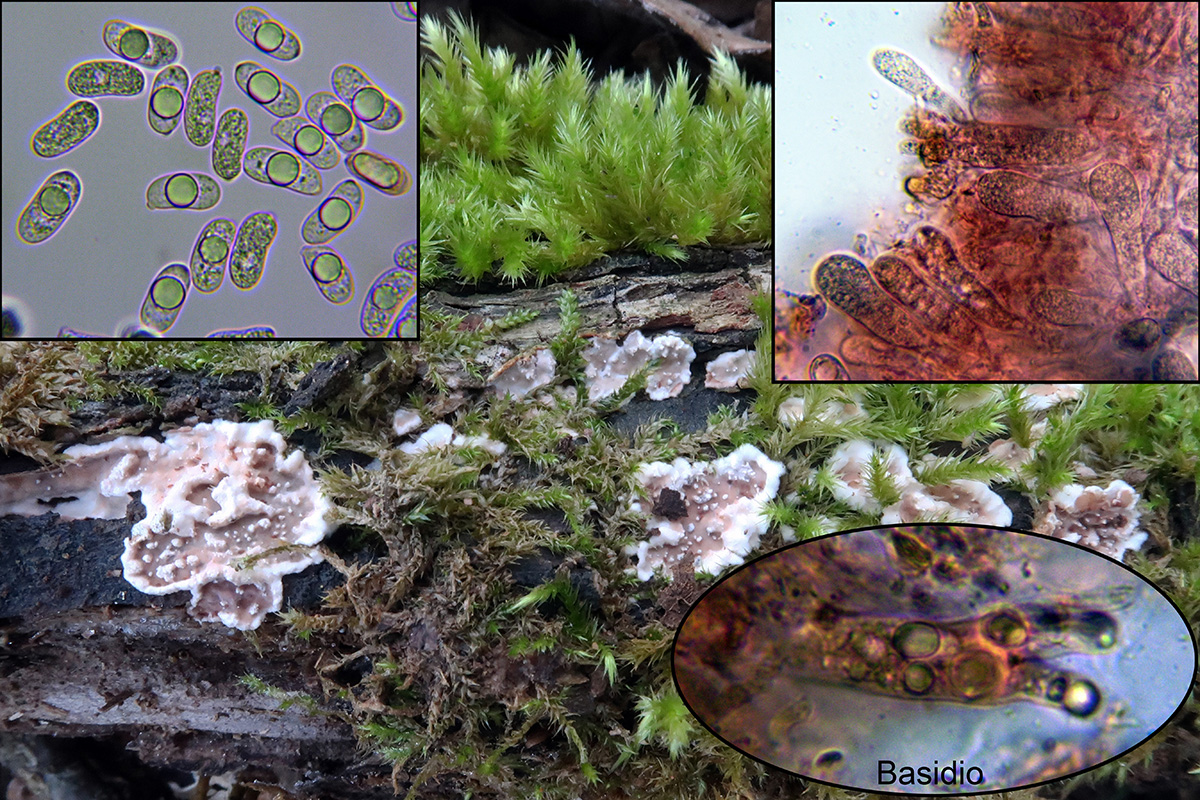 Esta otra del 19 de Noviembre de 2017, en soto fluvial, sin cistidios, con sistema hifal monomítico compuesto por hifas generativas fibuladas, la Trechispora farinacea