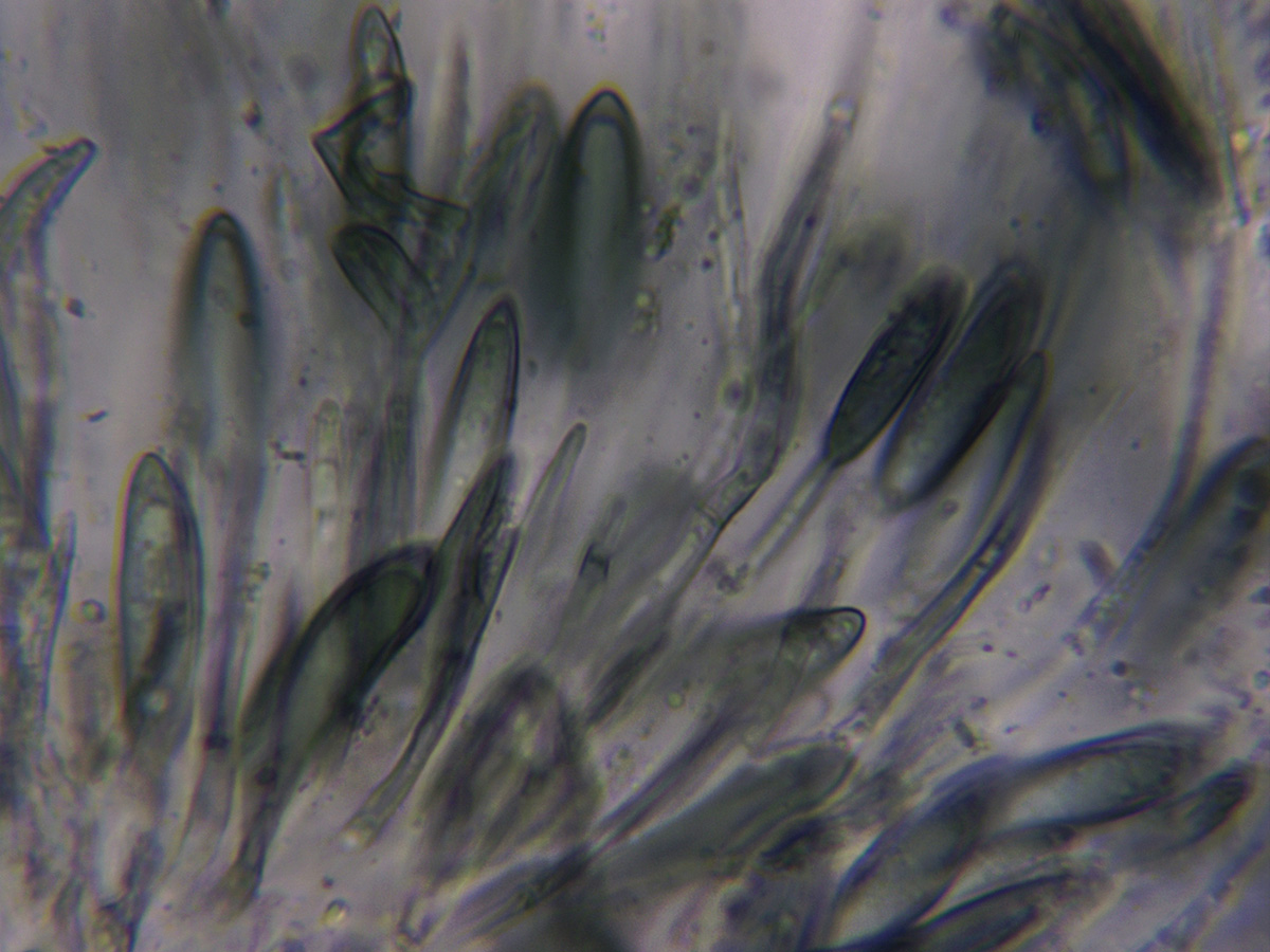 Himenio a 400 aumentos en solución de Rojo Congo diluido.