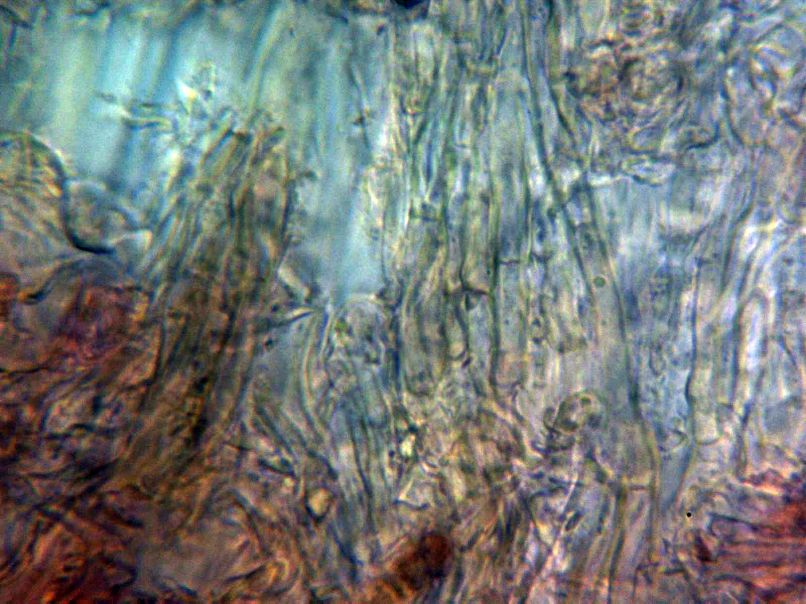 Hifas del contexto por debajo del himenio en Rojo Congo diluido.