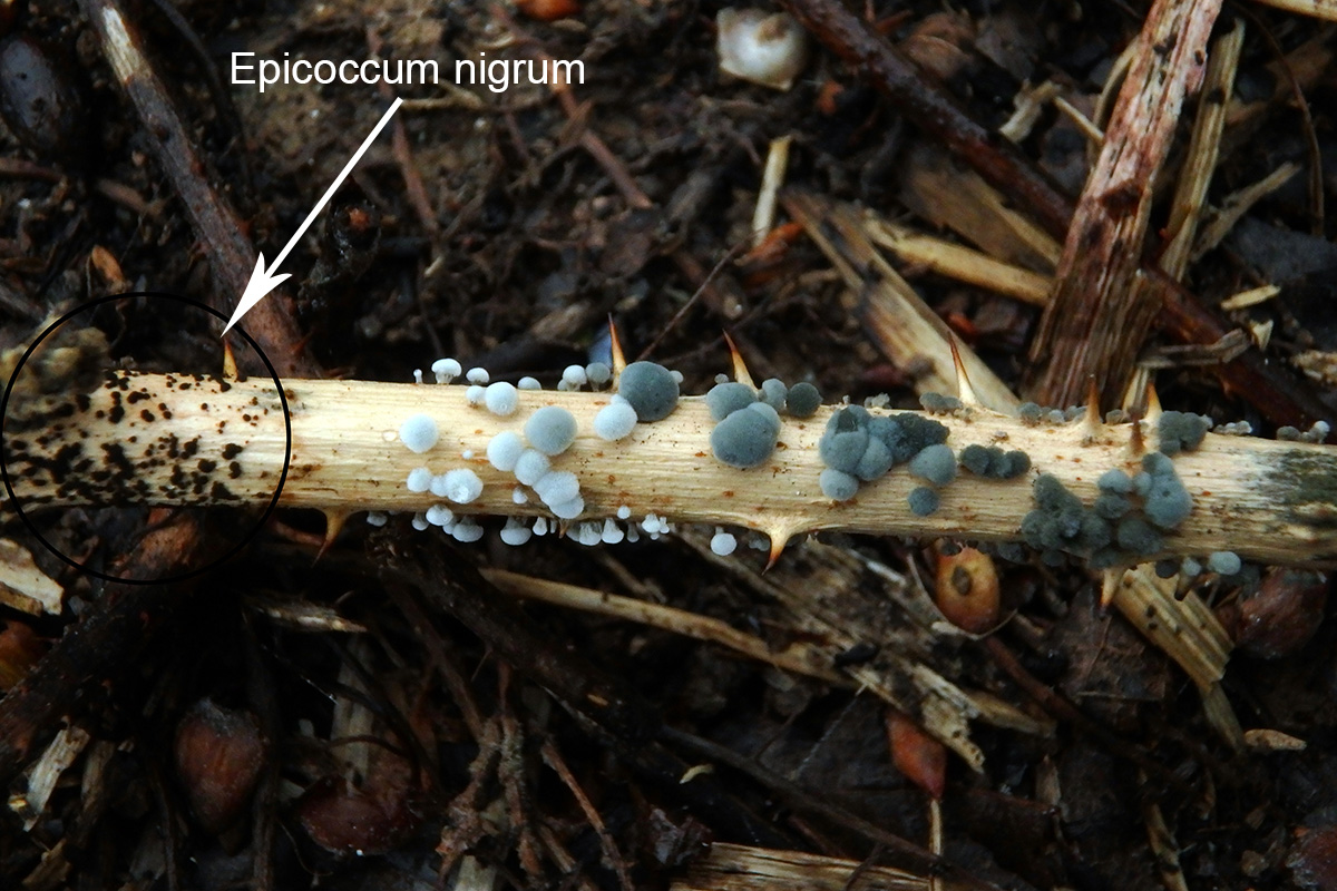 En el tronco compartía espacio con unos ejemplares de Epicoccum nigrum, aunque en un principio no hay ninguna relación entre ellos.
