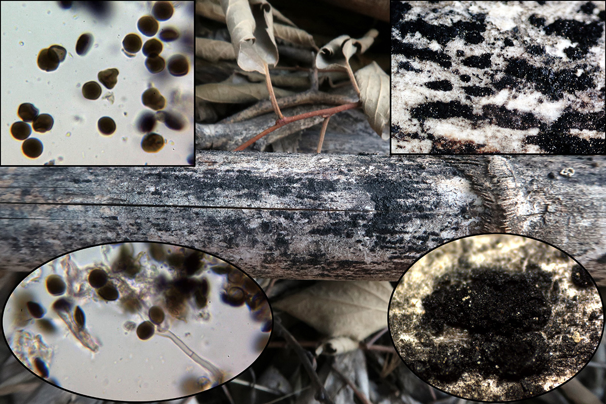 Sobre una caña común "Arundo donax", el Arthrinium arundinis