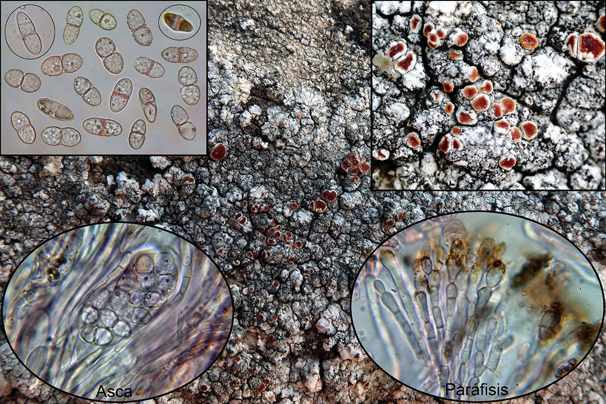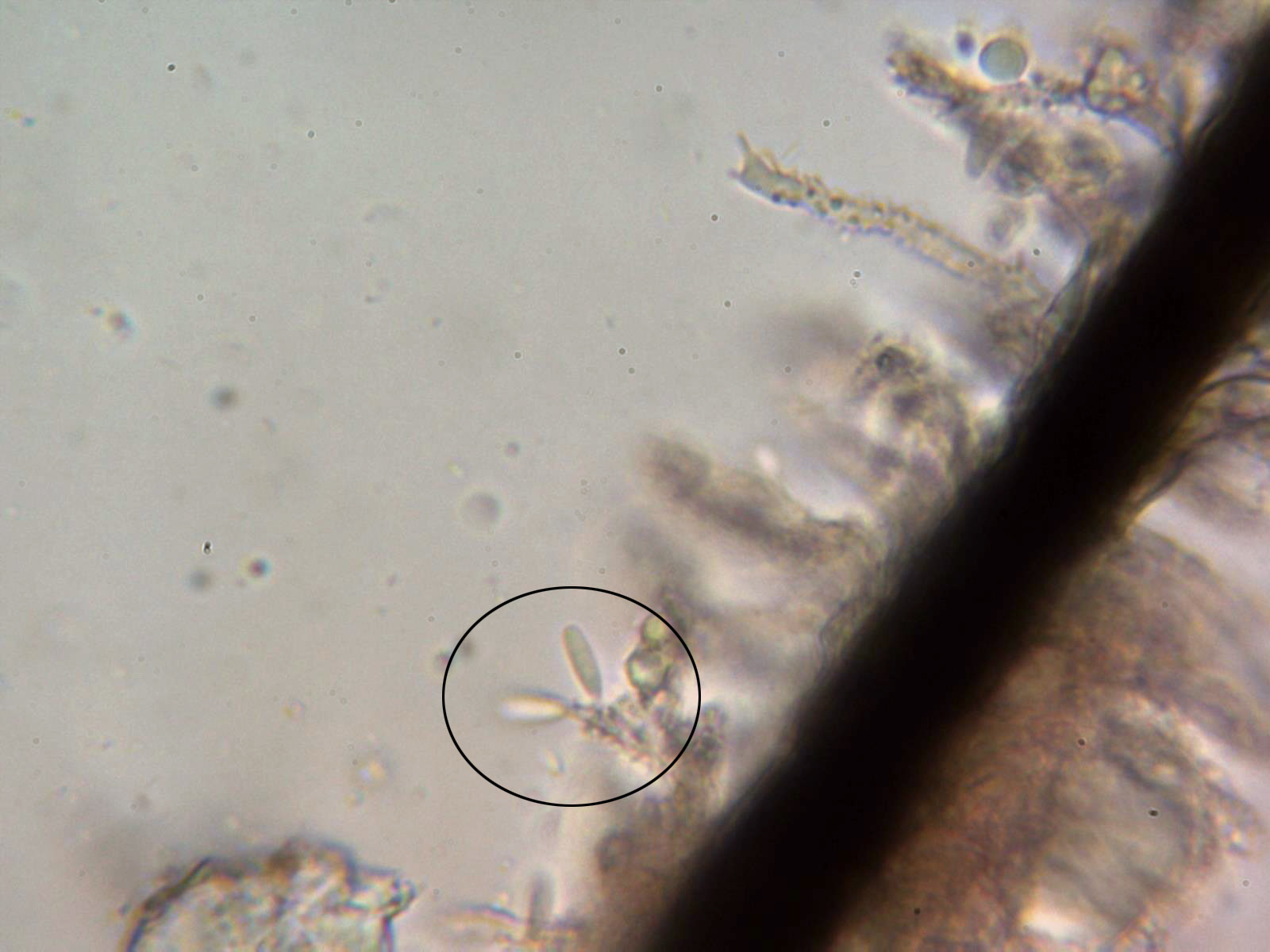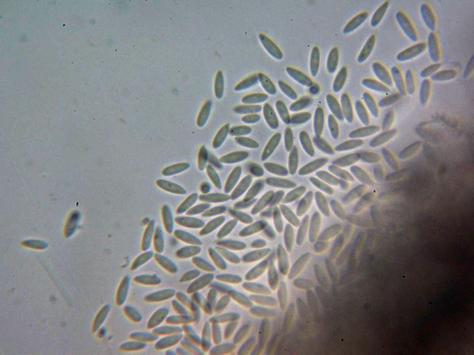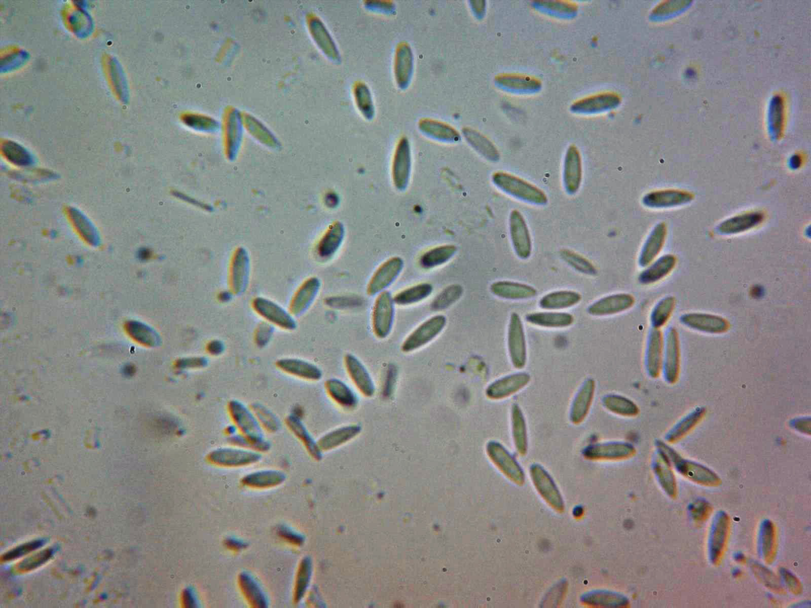 Sus esporas con unas medidas un poco por encima de las que se le atribuyen: