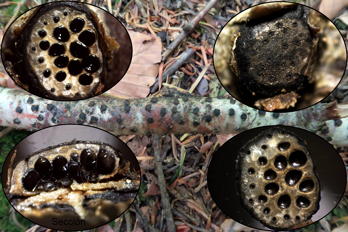 Una que conocía bien pero que no disponía de su microscopía completa, la Diatrype disciformis