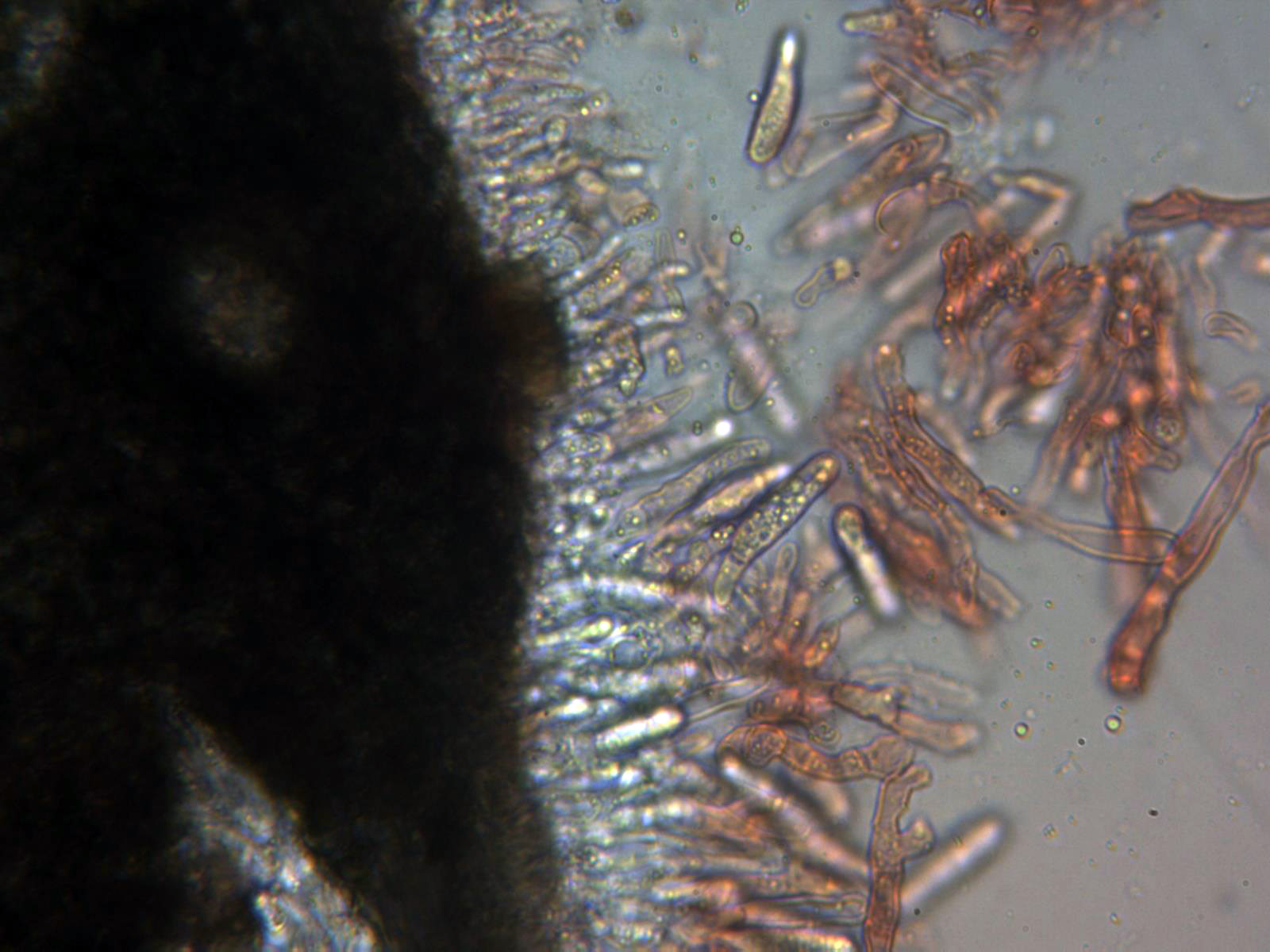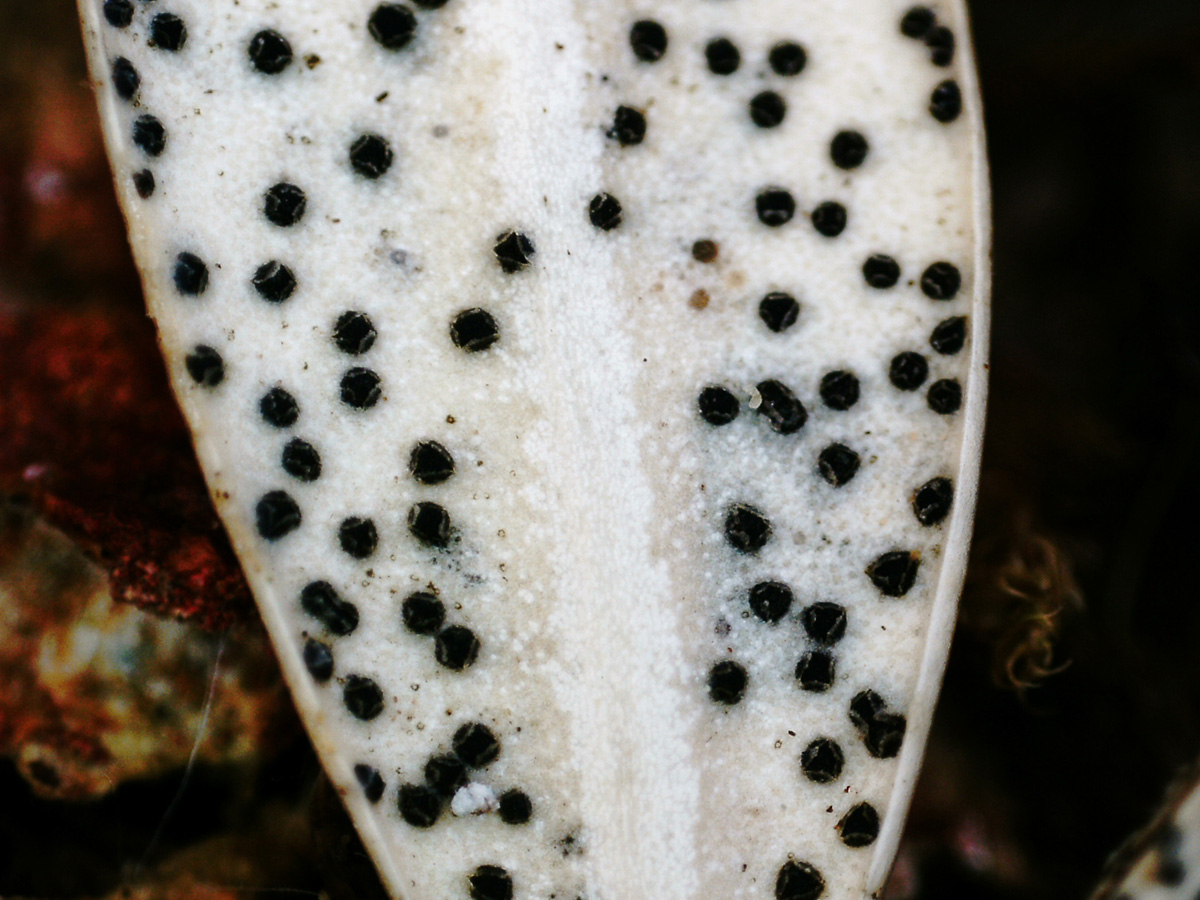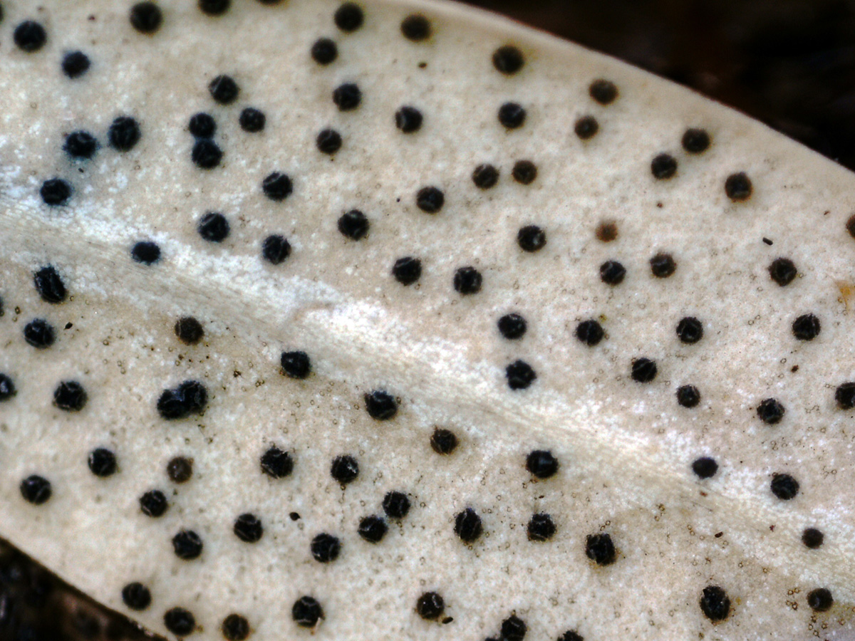 Entre los cromos chulos que nos presentaba, había uno que me llamó especialmente la atención, era la Hyponectria buxi, desde entonces y en especial este pasado domingo no he dejado de buscarla sobre hojas de boj, hasta el punto que me encontré con el anamorfo, dejo una imagen: