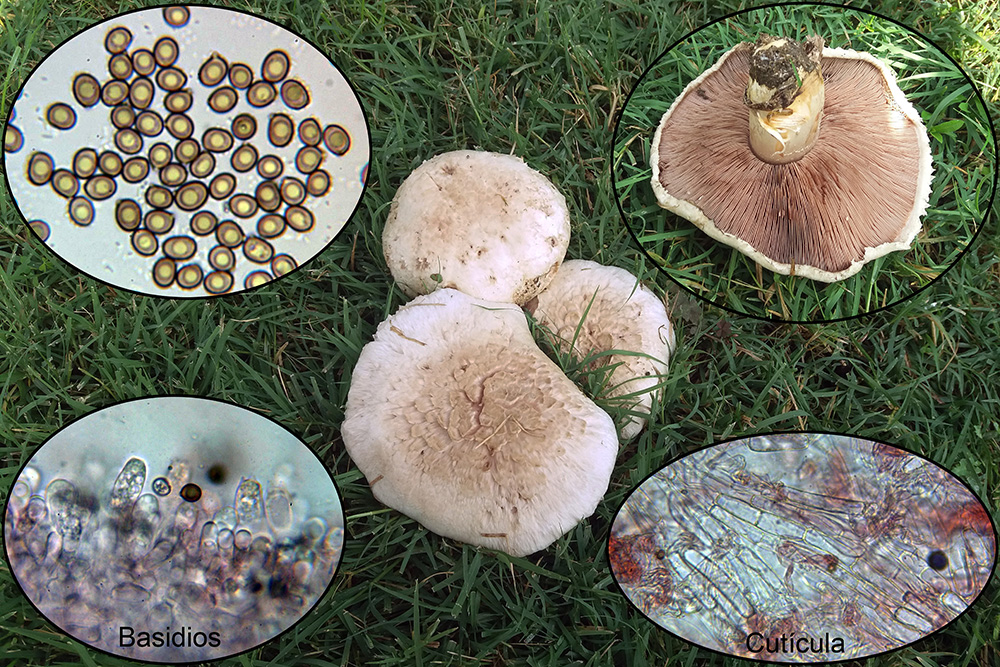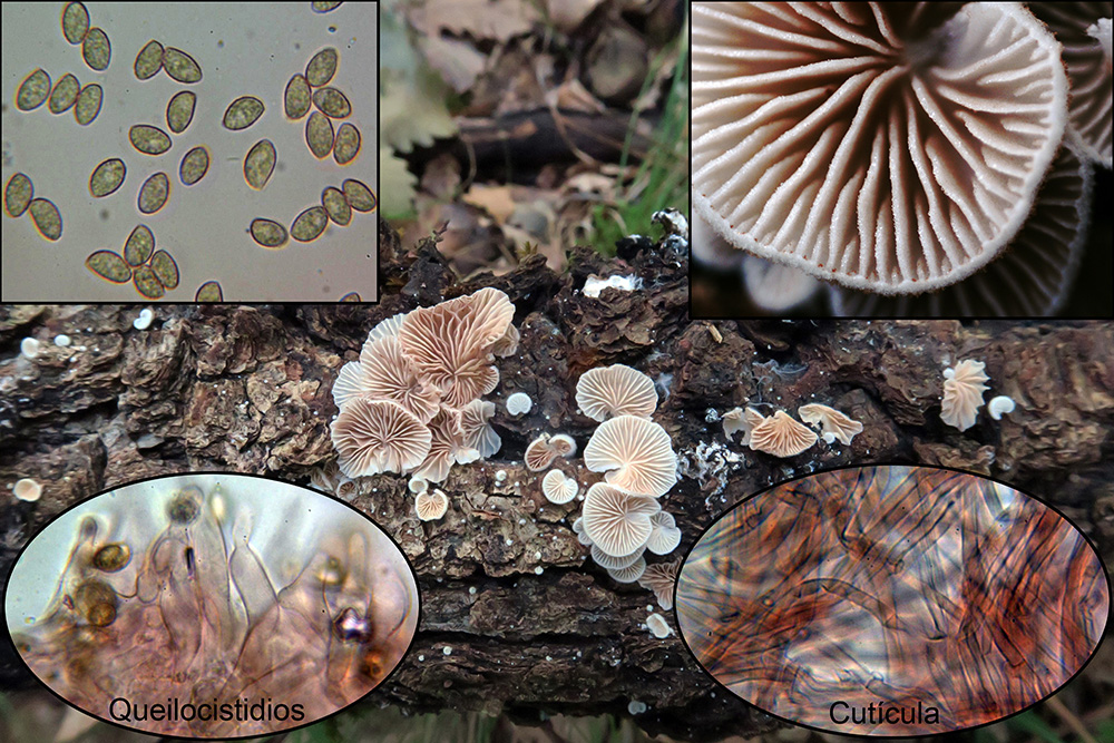 Un Crepidotus, con fíbulas en la cutícula, sus características microscópicas me llevan al Crepidotus caspari