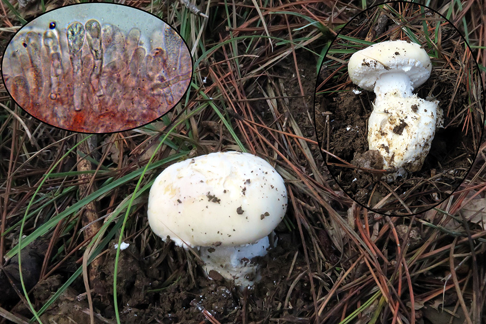 Y al poner a esporular la anterior, y sobre su sombrero apareció una que ya había estudiado un par de años atrás, en aquella ocasión sobre Tricholoma terreum, ahora sobre Amanita ovoidea, la Mycogone rosea