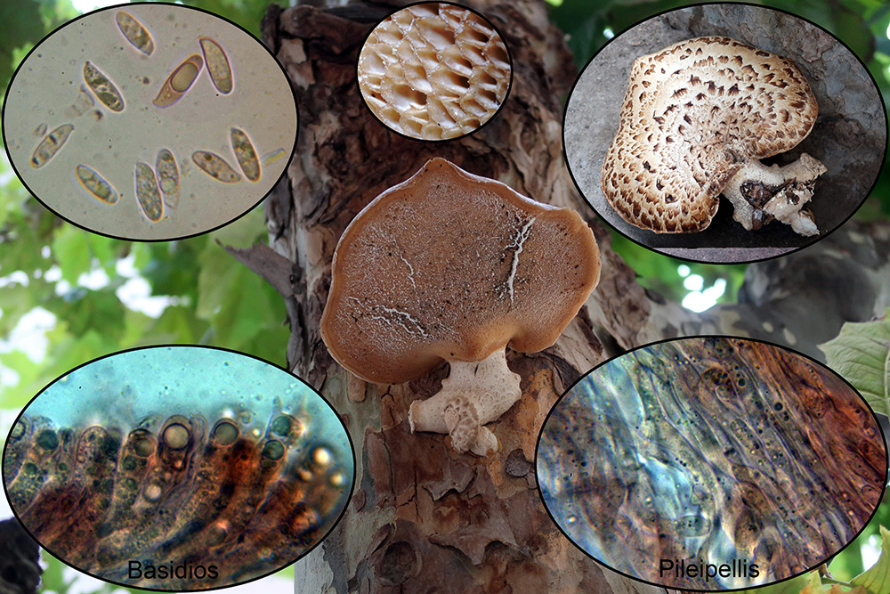 Y para terminar un par que me he encontrado en mi ciudad, la primera sobre un Plátano de sombra vivo, Platanus hispanica, y a una altura muy considerable, el Polyporus squamosus