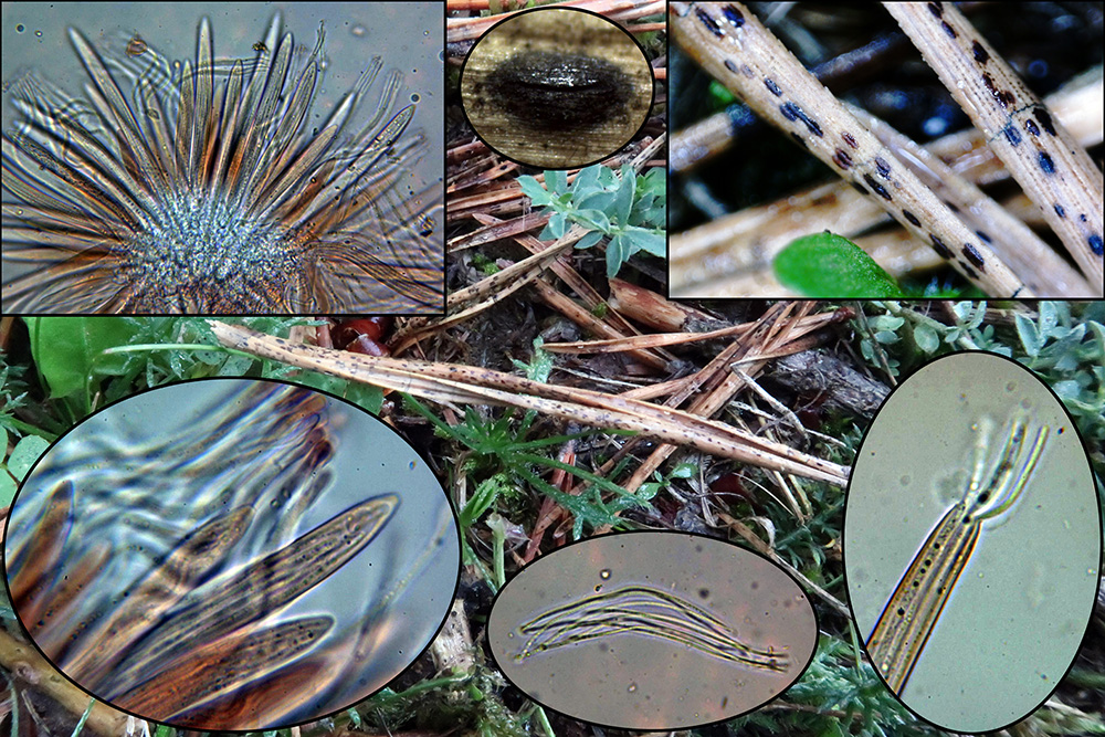 Una que a pesar de su abundancia se nos pasa desapercibida, sobre acículas de pino, el Lophodermium pinastri