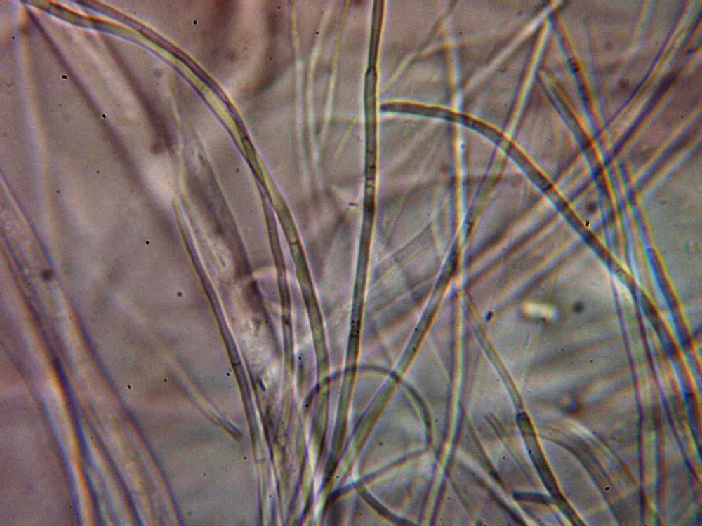 Esporas filiformes septadas y que superan de largo las 200 micras, con una anchura de apenas 2 micras.