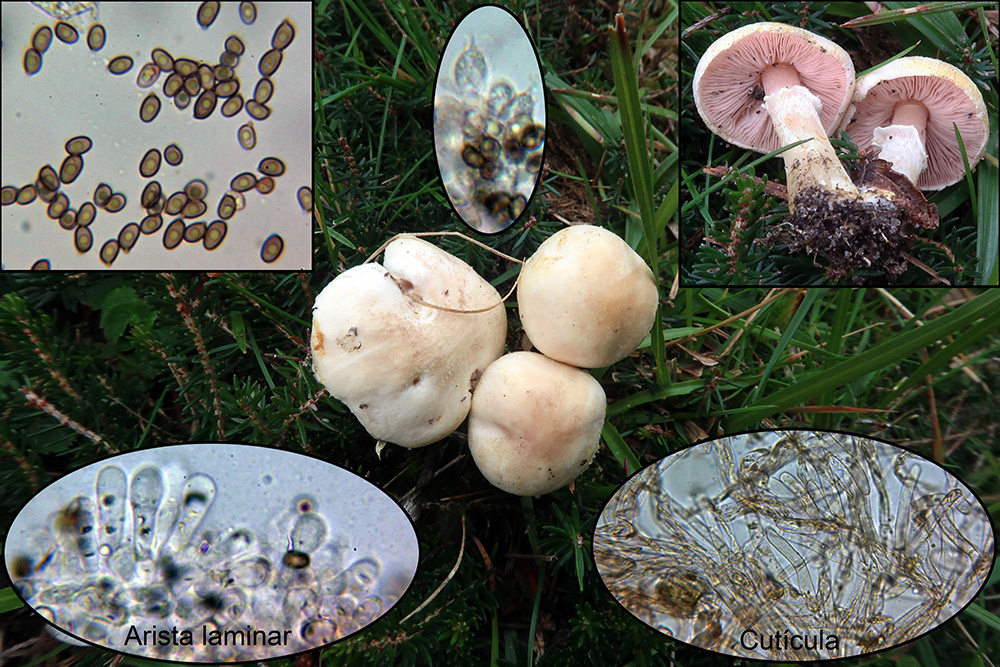 El primero un Agaricus de la sección Minores, admito que dudaba entre 3, pero por la presencia de unas hifas vesiculosas a modo de queilocistidios en la arista laminar y las medidas esporales (mas acordes en Rojo Congo diluido) la opción mas probable es la del Agaricus niveolutescens, al Agaricus niveolutescens actualmente al parecer debemos denominarlo por su antiguo nombre, es decir Agaricus comtulus