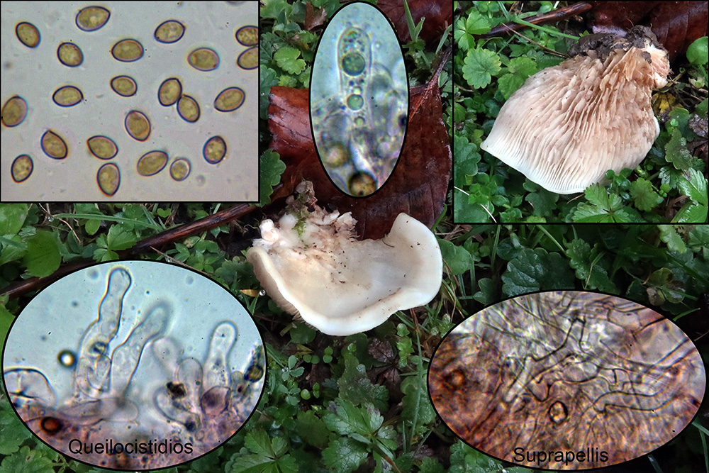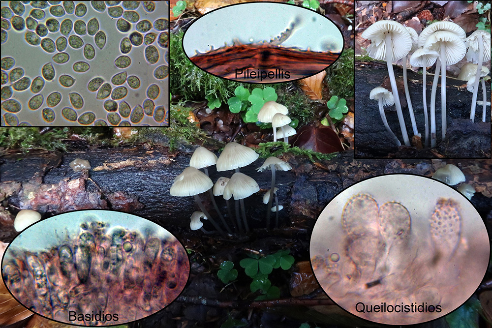 Un Gymnopus que por su olor va directo a la sección Impudicae, un olor desagradable que en este caso lo notaba mas a 20 cm. que de cerca, considerando sus pequeñas medidas esporales (descarto el Gymnopus impudicus tipo) el documento de Noordelos me lleva solo a dos, el Gymnopus hariolor y el Gymnopus brassicolens, por el aspecto descarto asimismo el Gymnopus hariolor, y aunque no se parece mucho macroscópicamente a falta de nuevos estudios y revisiones del género lo dejo como Gymnopus aff. brassicolens