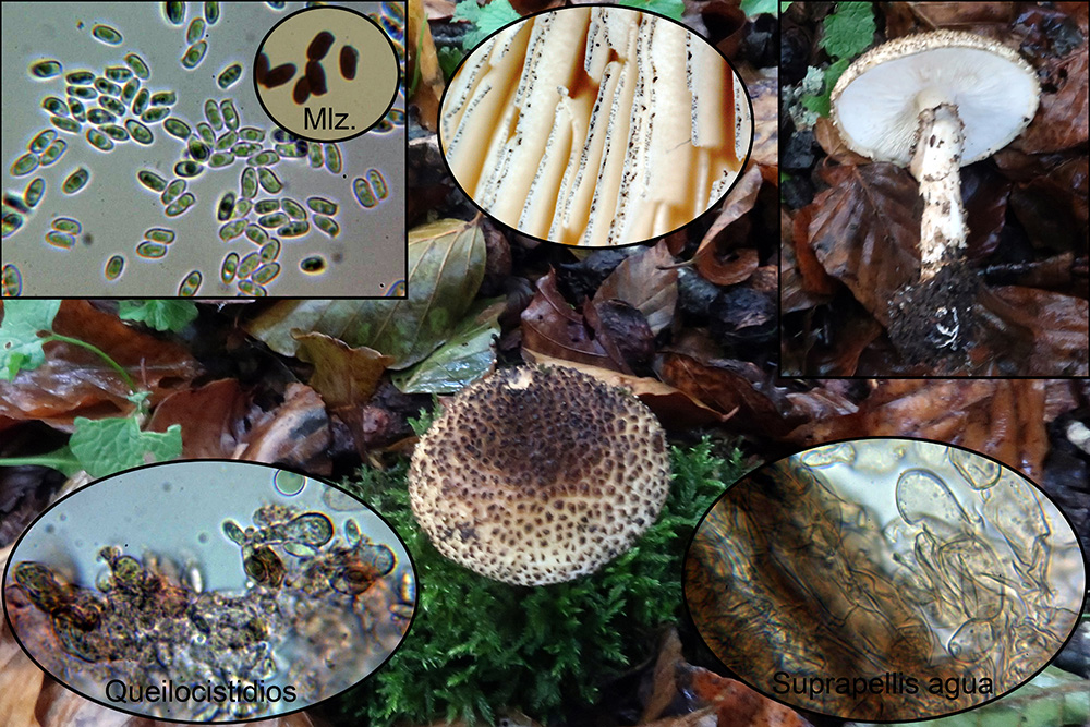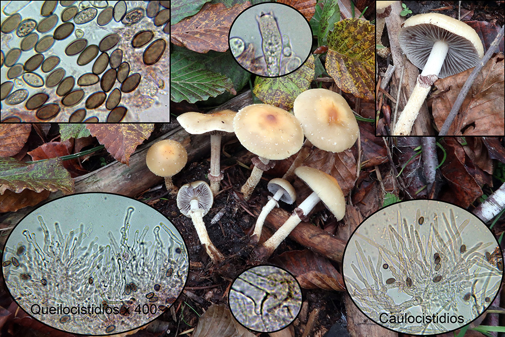 Una Stropharia, con unos muy largos, sinuosos y hasta bifurcados queilocistidios, la Stropharia squamosa, actualmente Leratiomyces squamosus