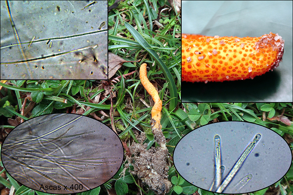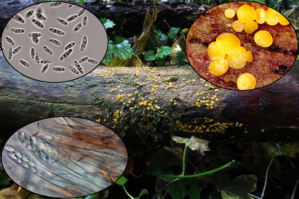 Sus esporas con unas medidas de 11.8 - 15.3 × 5 - 5.8 µm
