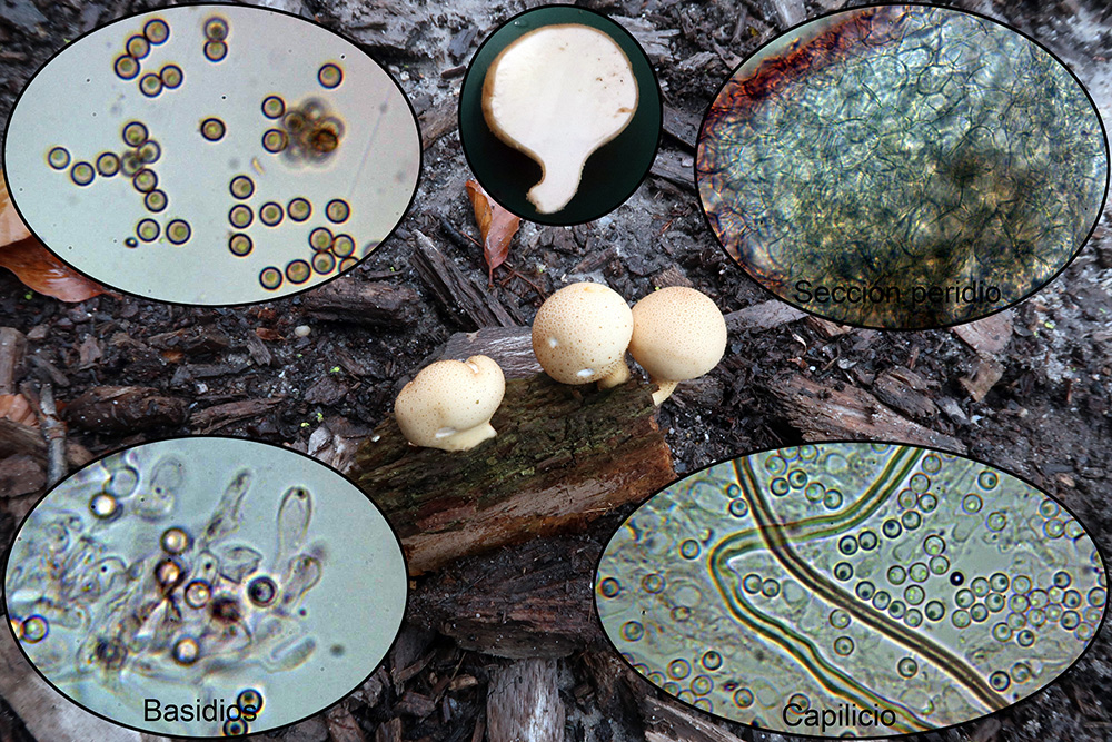 Sus esporas con unas medidas por encima de las que se indican en la bibliografía de la misma, en este caso de (10) 10.3 - 12.3 (12.5) × 5.9 - 6.9 (7) µm.