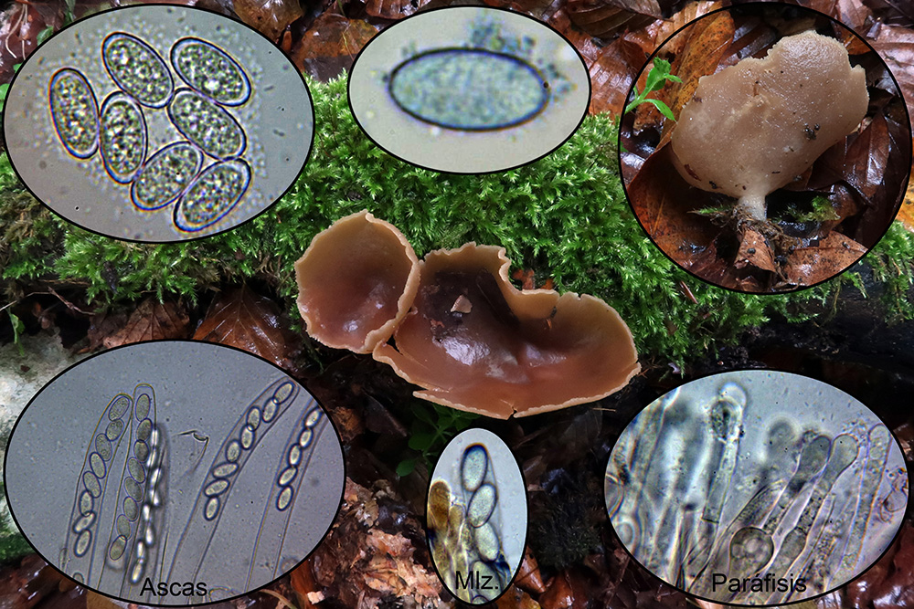 Una Peziza de hayedo, con un rudimentario pié, la Peziza arvernensis