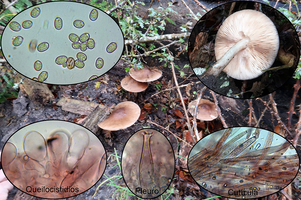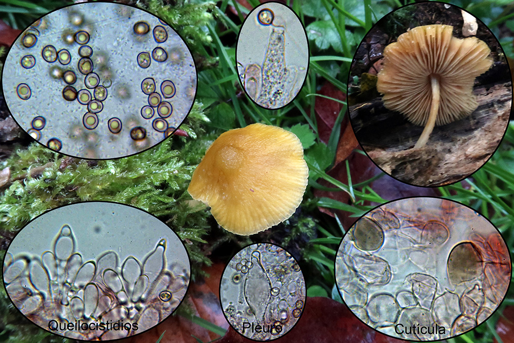 Una Simocybe que se caracteriza por sus queilocistidios capitados, la Simocybe sumptuosa