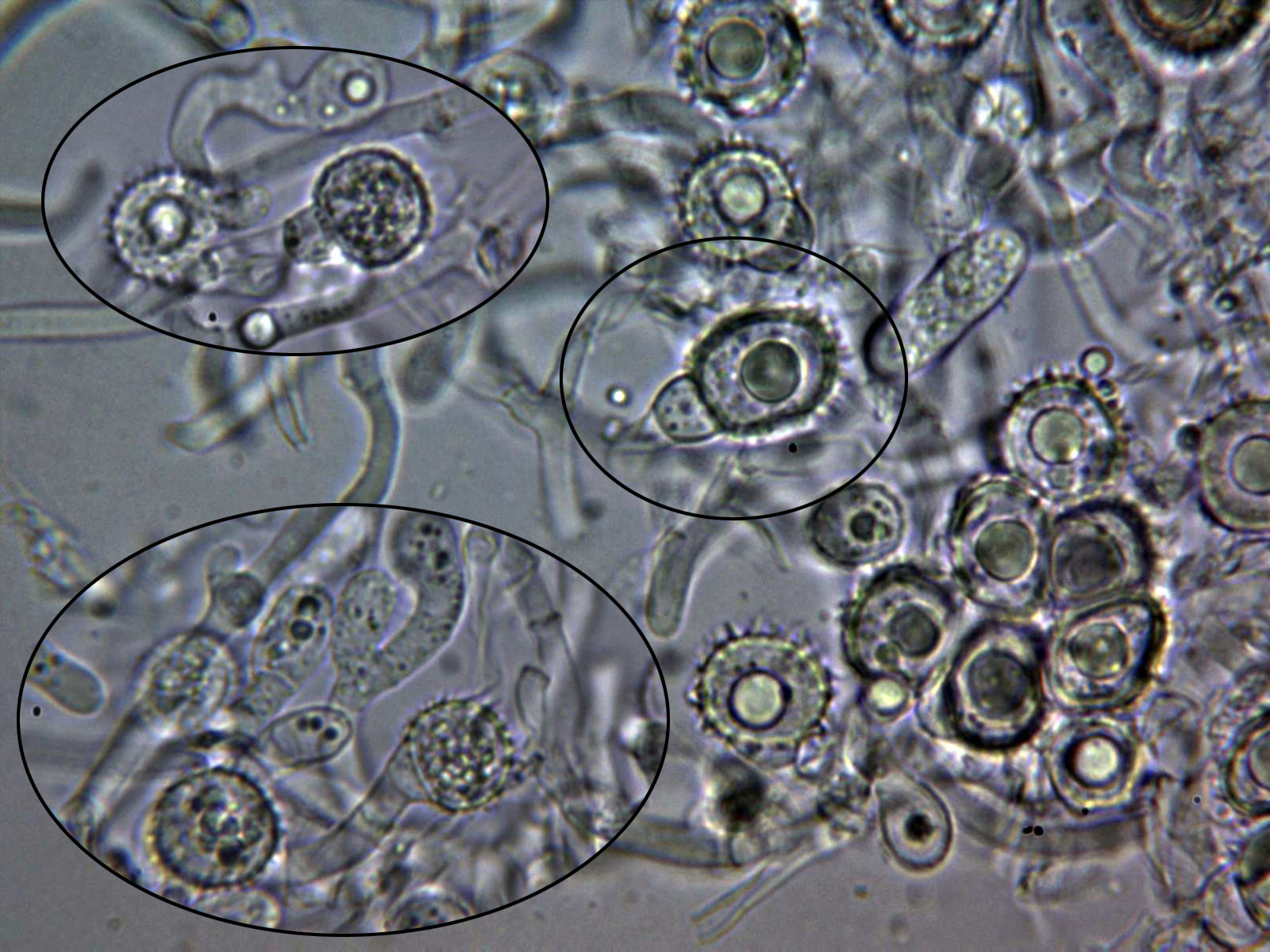 Esporas en formación en agua destilada