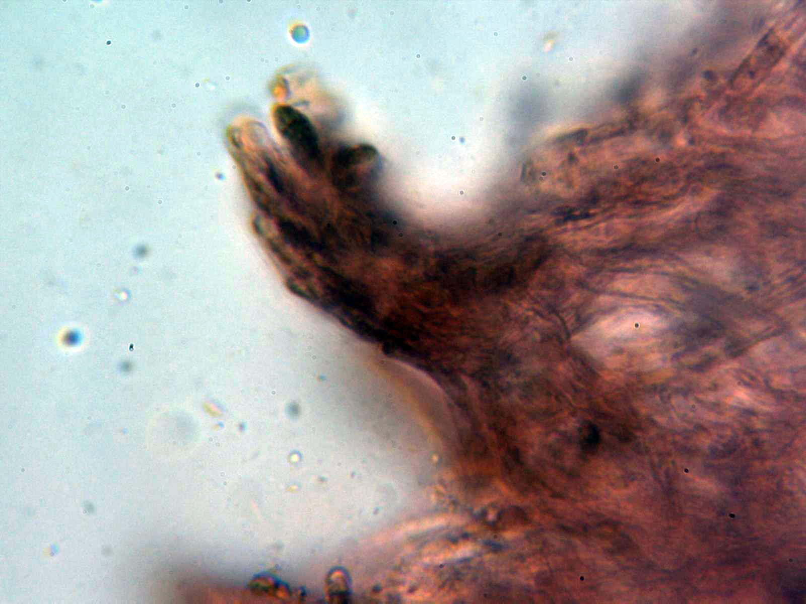 Hifas de la suprapellis pigmentadas, en estado joven con su cutícula aterciopelada para volverse glabra al acercarse a la etapa adulta