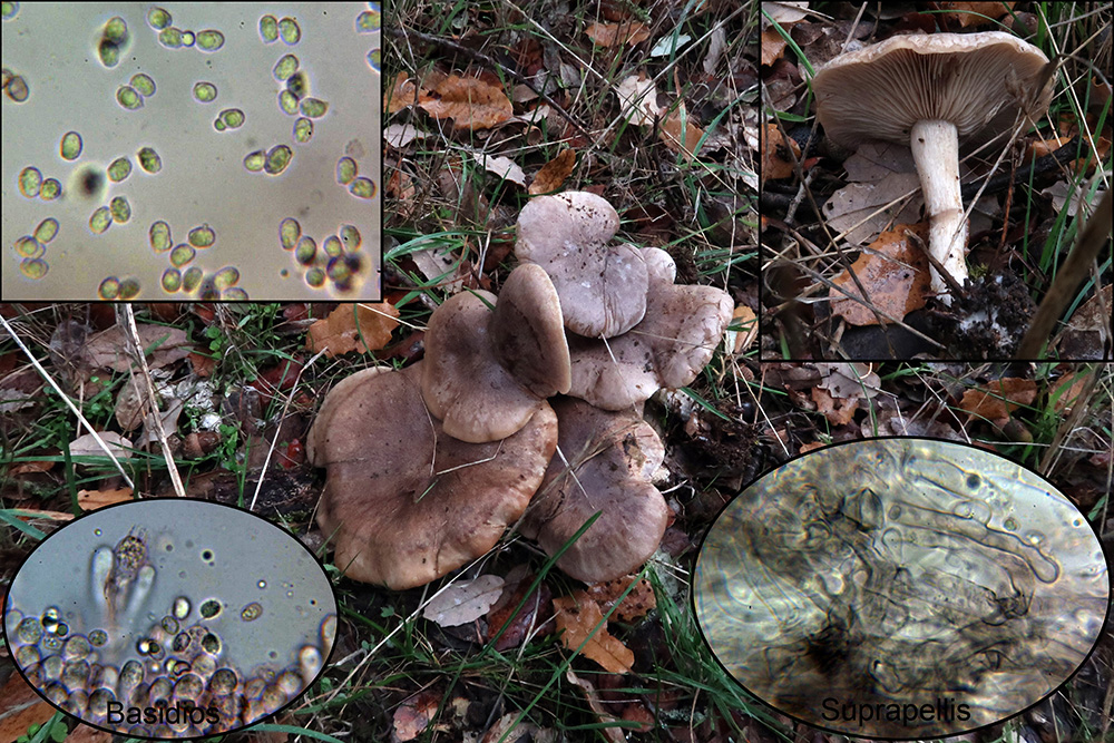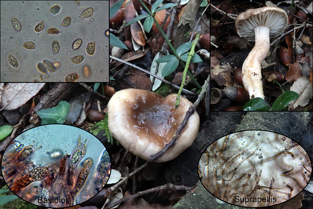 Una que también me faltaba y que parecía muy clara, con olor rancio y una larga raíz, al parecer sin muchas confusiones posibles, todo apuntaba a Tephrocybe rancida, si bien la microscopía parece encajar con la especie ya no tanto las medidas de los basidios y las esporas, (aunque si coincide el cociente Qe) en mi estudio bastante por encima de las que debería presentar, es por lo que debo dejarlo abierto como Tephrocybe cf. rancida