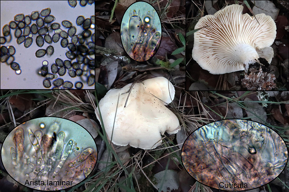 Cerca de las dos anteriores, nos encontramos el Clitocybe mediterranea, si no es por los maestros a mí me habría colado como Clitocybe gibba. Pocas esporas obtenidas, todas de manera forzada y no aptas para mediciones.