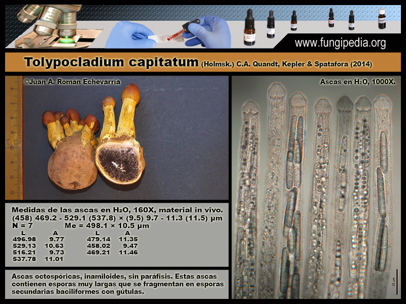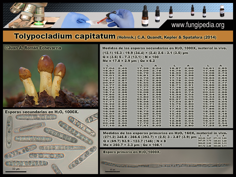 - Tolypocladium capitatum (Holmsk.) C.A. Quandt, Kepler & Spatafora (2014). Micro.
