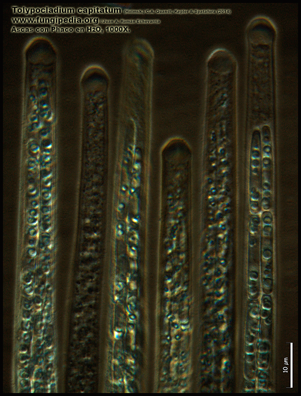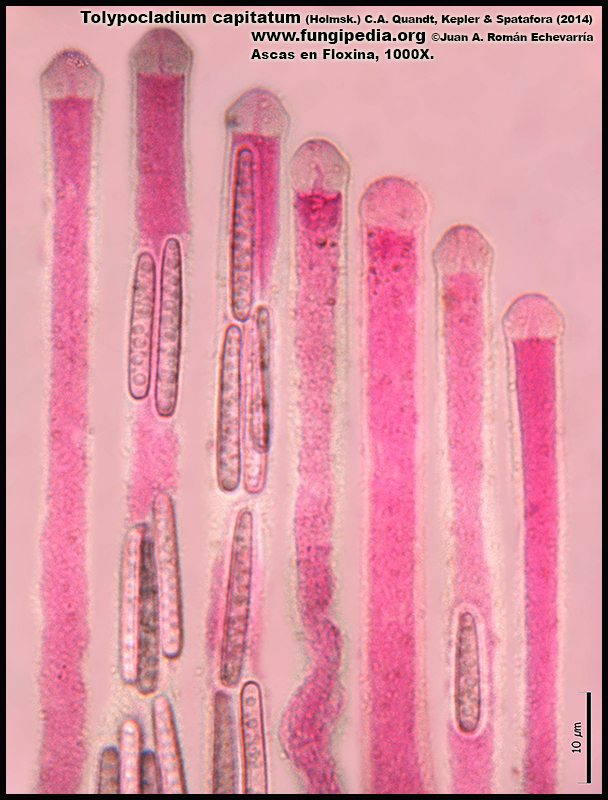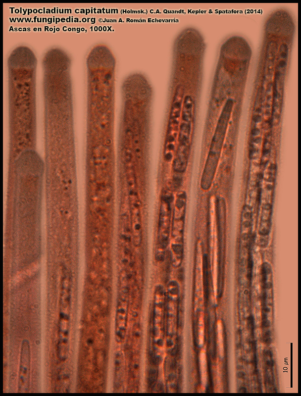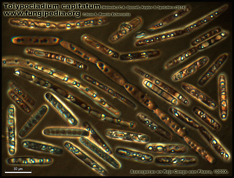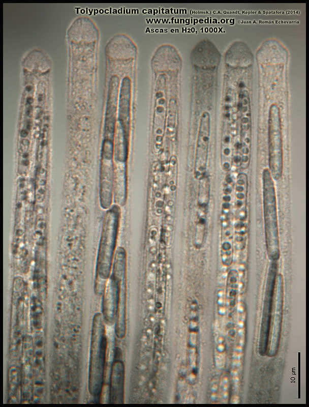Tolypocladium capitatum (Holmsk.) C.A. Quandt, Kepler & Spatafora (2014). Micro. Publicado por Juan Andrés Román