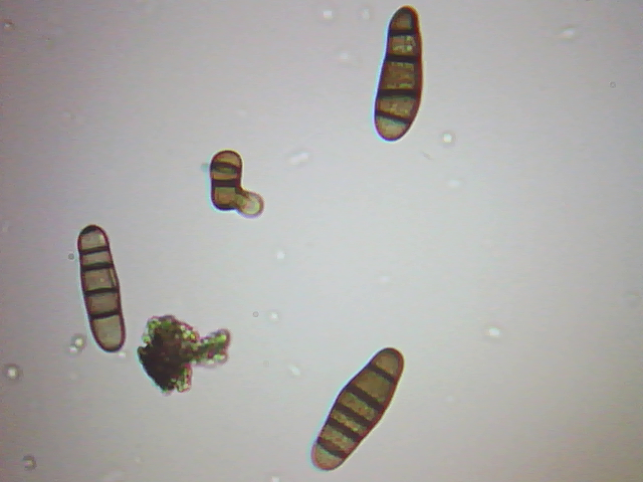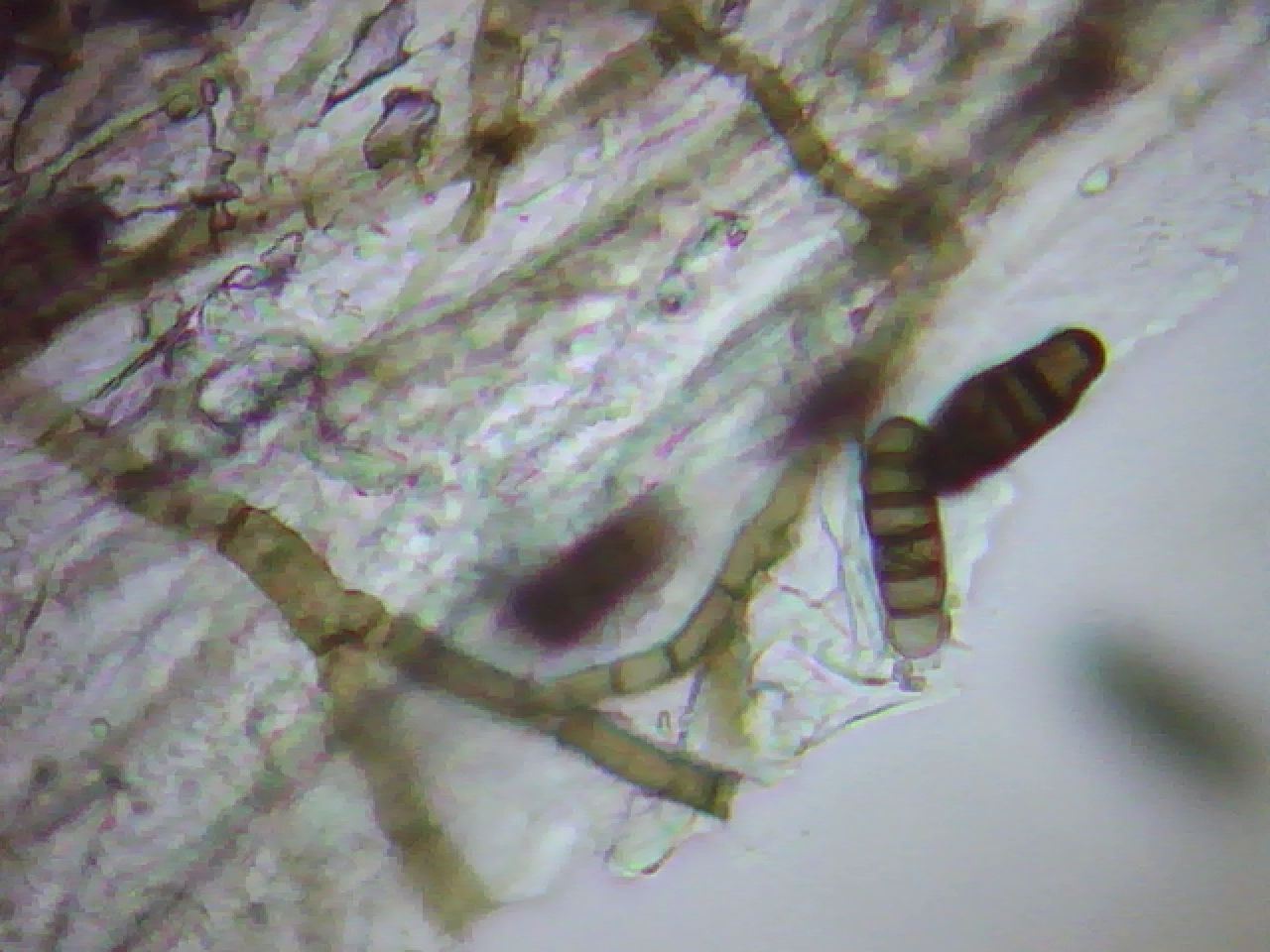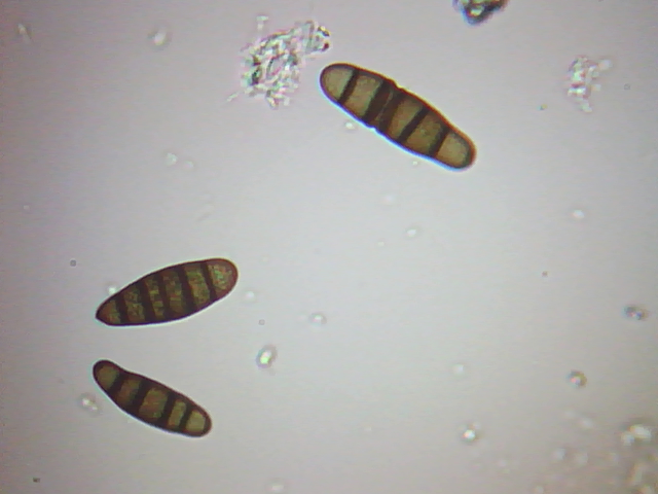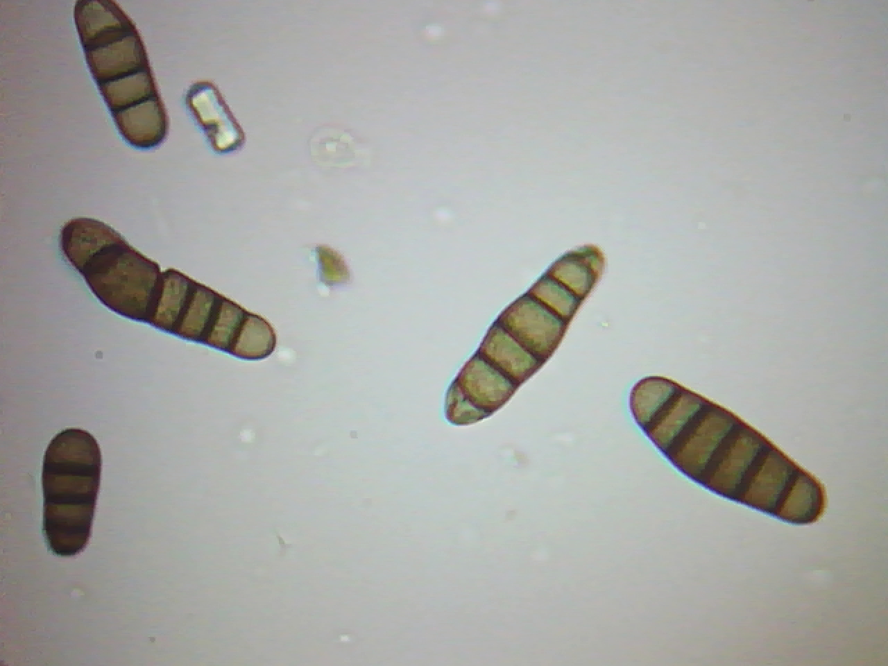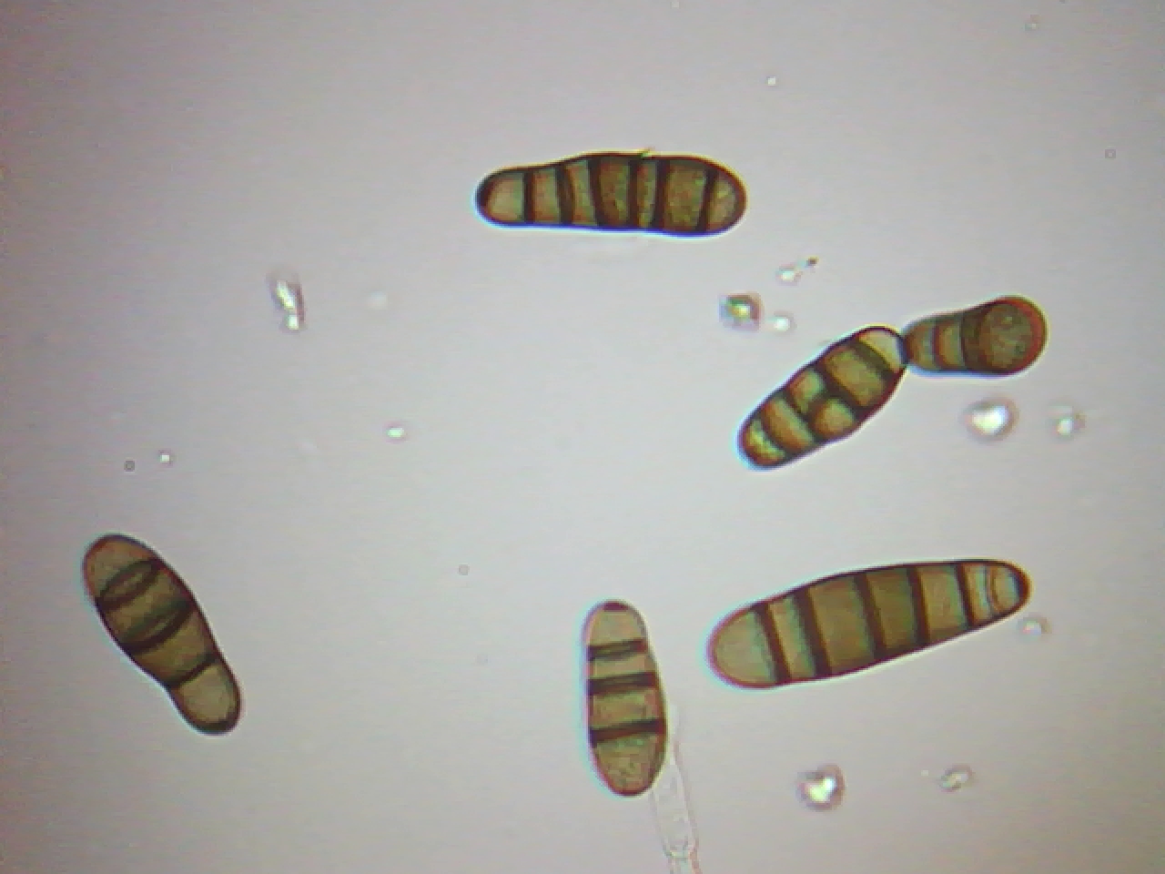 Para Jon Ander: los conidios que os muestro, pertenecen al hongo llamado Embellisia allii. Este fitopatógeno es un hongo que ataca a las plantas, en este caso al Ajo = allii