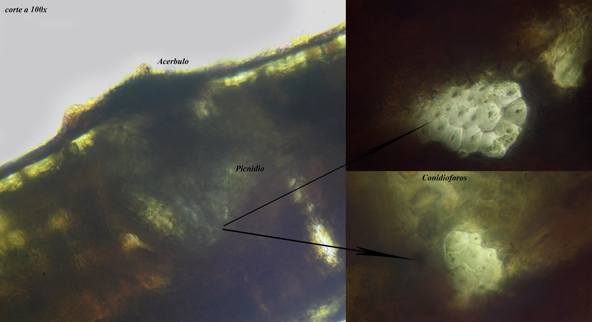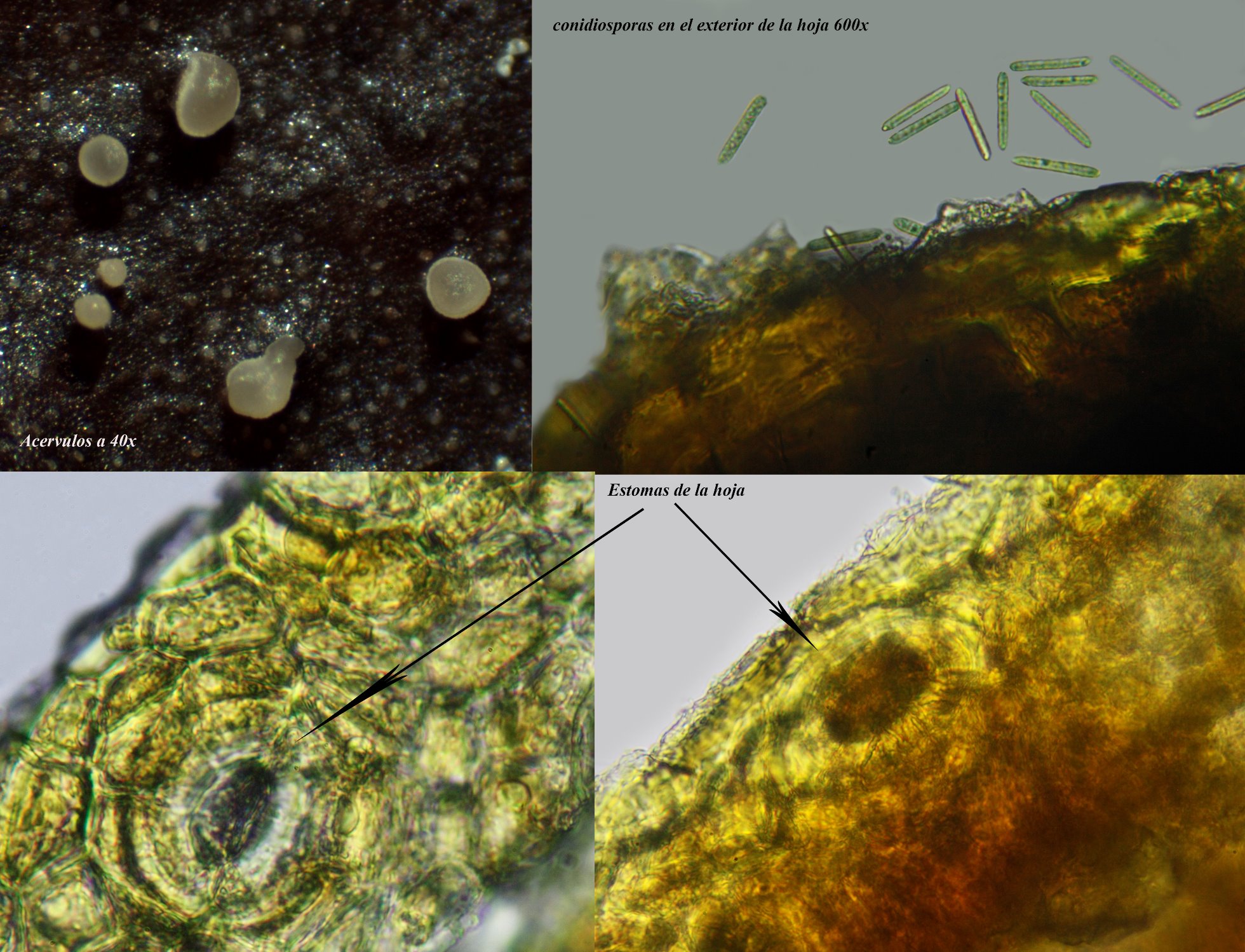 estas son a 600x los acervulos blanquecinos observados.