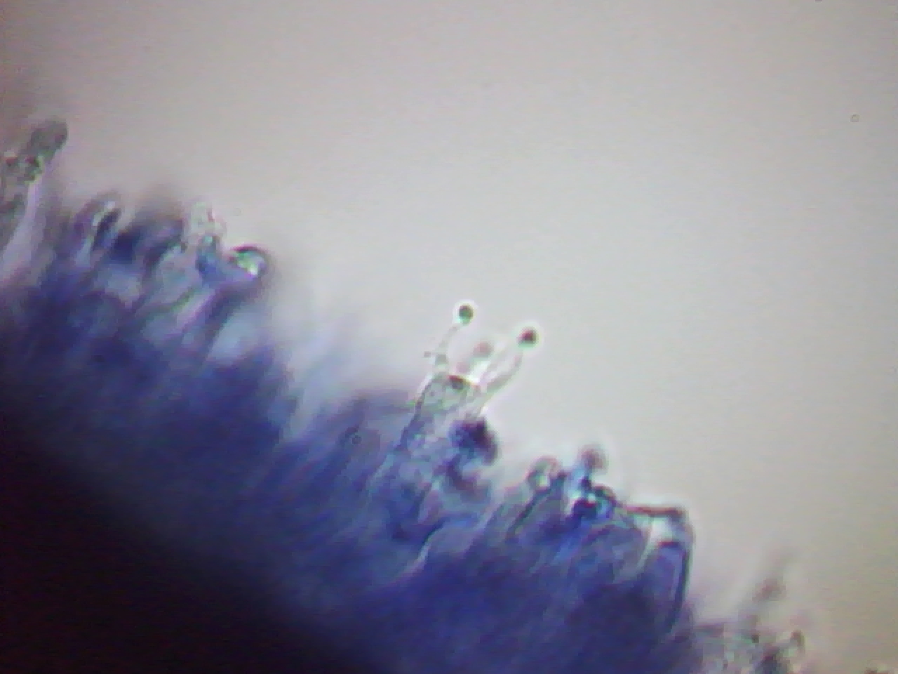 Gracias Josep por tu respuesta, pero para mi lo curioso de la microscopía era la forma atípica de los Cistidios, las esporas al fin y al cabo daba por descontado que las iba a encontrar y que además no me parecen llamativas y entran dentro de lo normal, pero sobre todo es el color azul intenso y el aspecto aterciopelado del carpóforo lo que verdaderamente llama la atención.