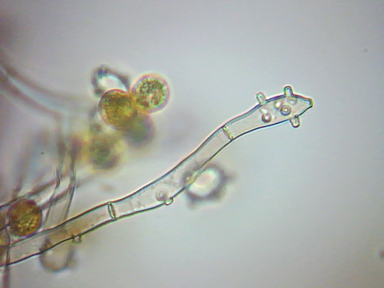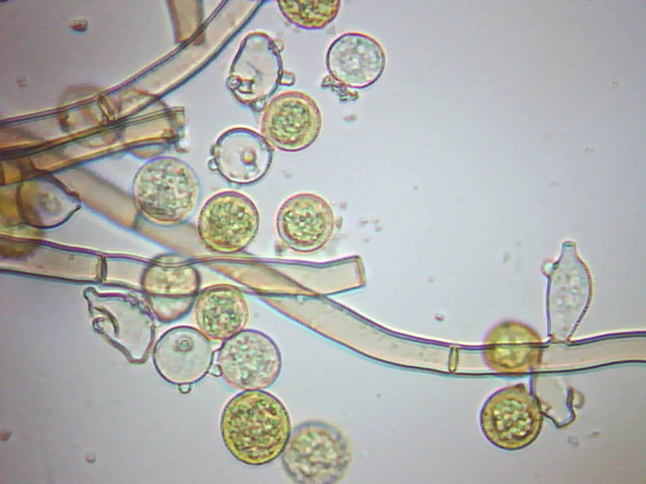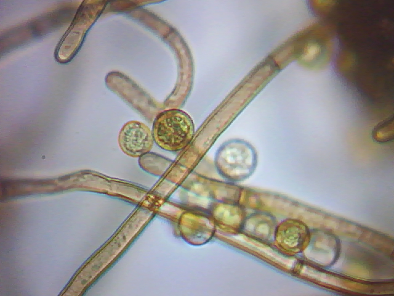 Desde entonces y gracias a vosotros ya conocía la especie y desde aquel momento no he cesado de encontrármela y ya le he realizado varios estudios, y por curioso que parezca aún no he podido conseguir una imágen de sus basidios (fase sexual) solo conidióforos y conidios.