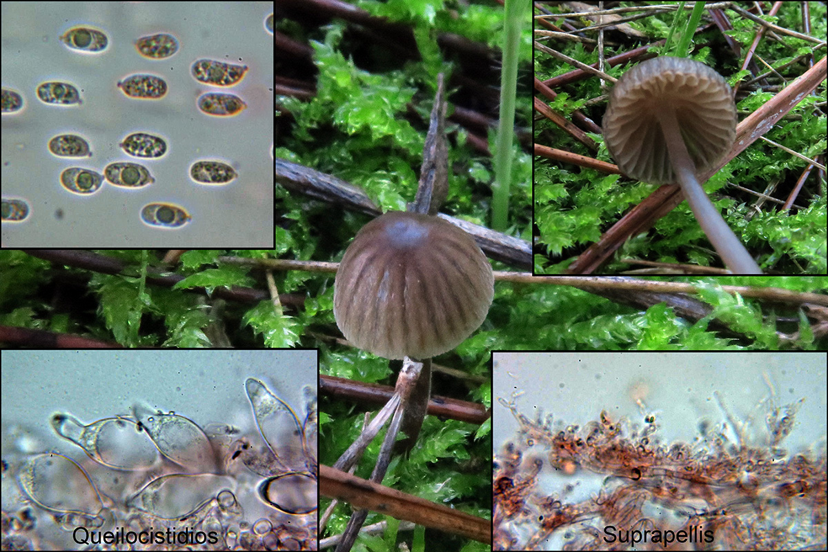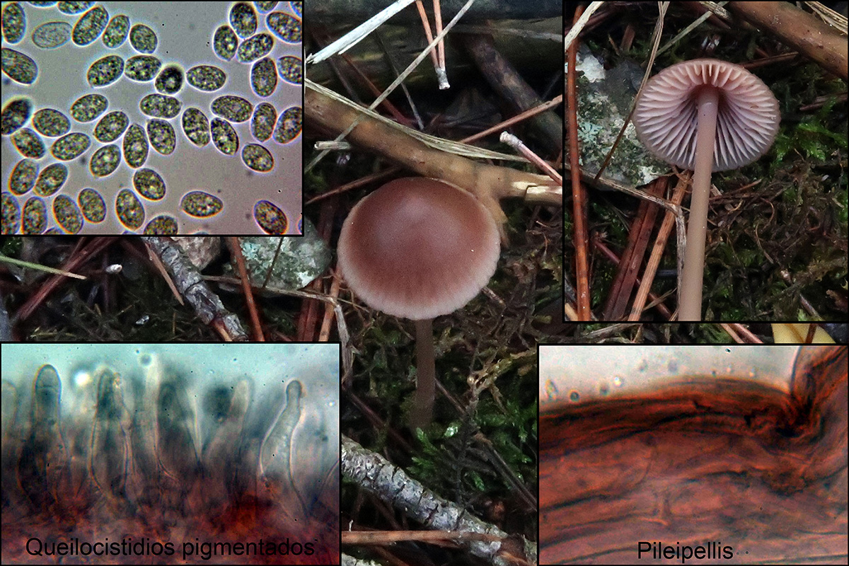 Una Mycena que admito que al dar por sentado que brotaba del suelo, me tomó el pelo por completo, solo ayer al reabrir el tema por enésima vez y al considerar sus queilocistidios pigmentados, fue cuando por fin me parece que di con su identidad, solo Dios sabe las horas que le he dedidado.