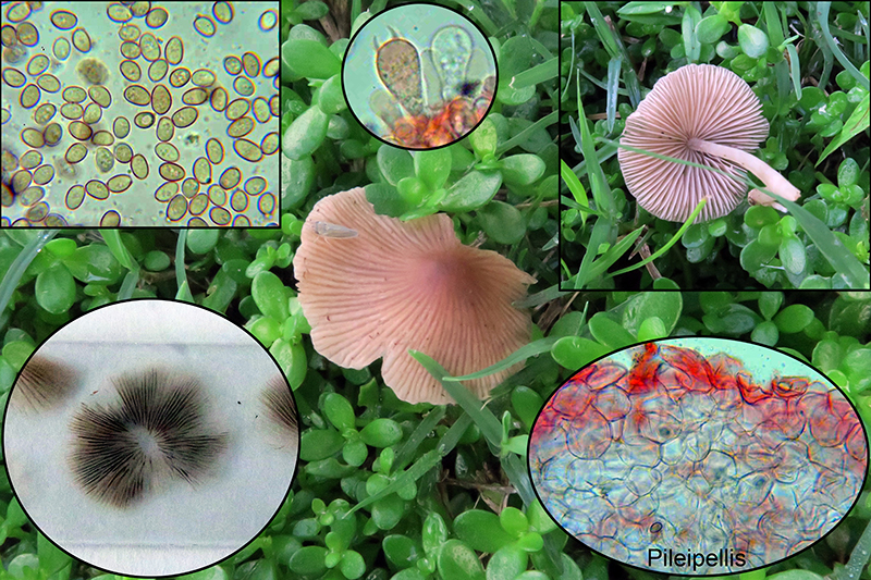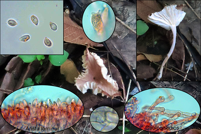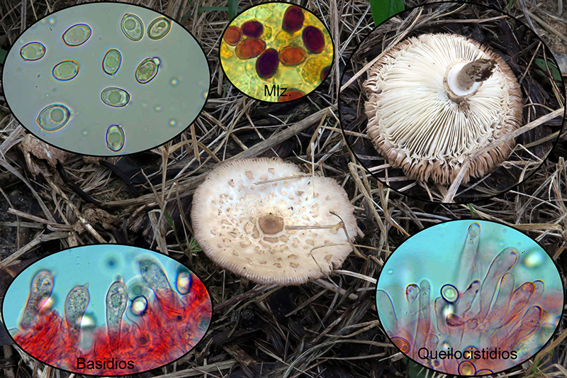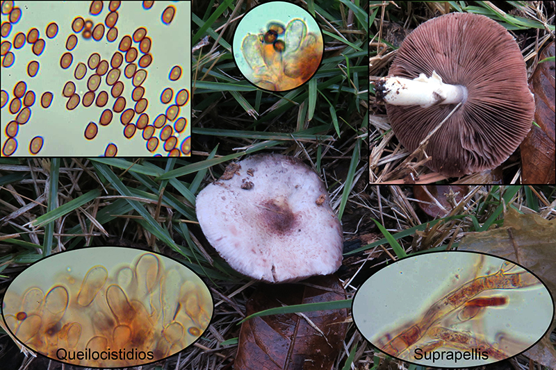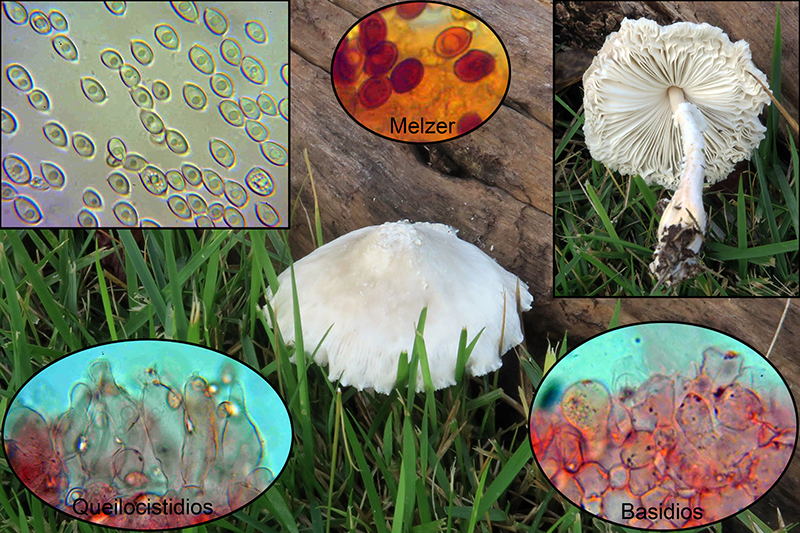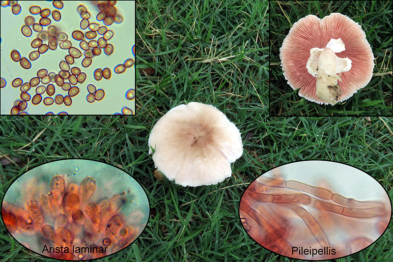 Otro Agaricus, este sin queilocistidios, con tonos marrón rosados, al parecer común en el Continente Amaricano, el Agaricus micromegethus