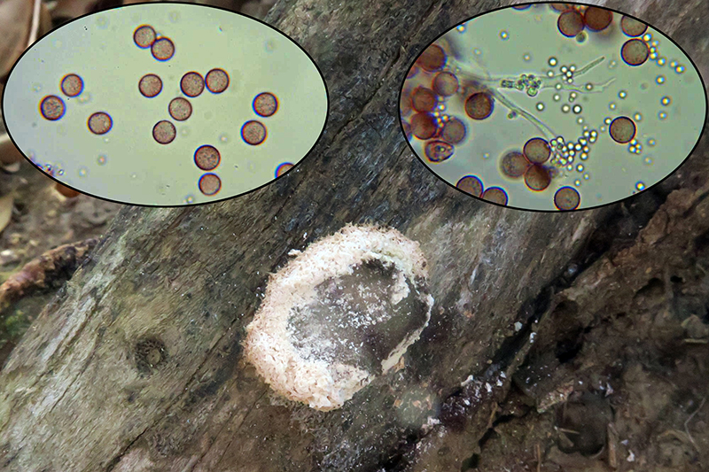 Sus esporas con unas medidas de 7,2;8,6 X 4,5;5,1 µm