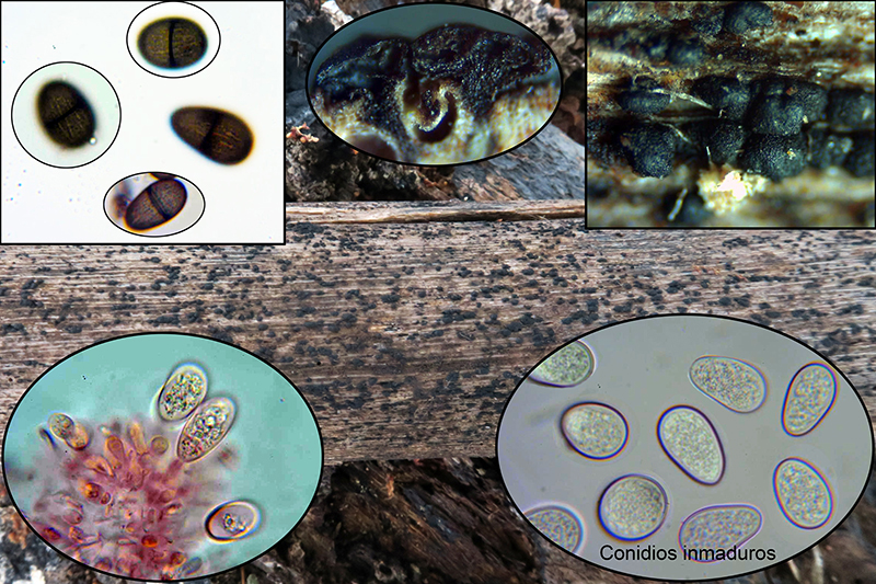 Sus conidios los inmaduros e hialinos con unas medidas de: