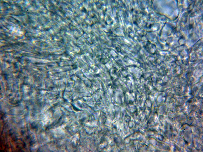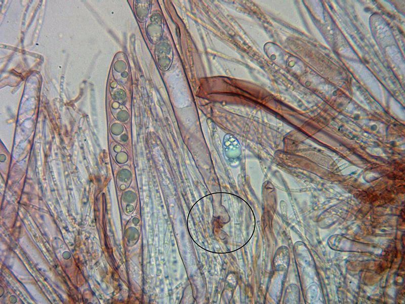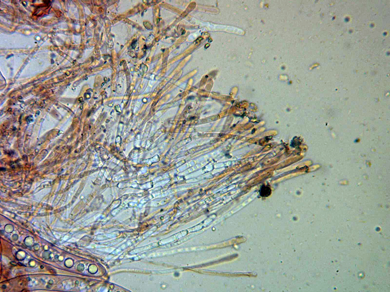 Por debajo de estas ya se encuentran las hifas subhimeniales con las ascas y patráfisis.