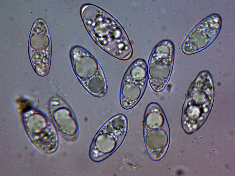 Sus esporas con unas medidas de (21.2) 22.6 - 25.1 (25.6) × (12.5) 13.1 - 14.2 (14.3) µm