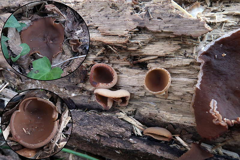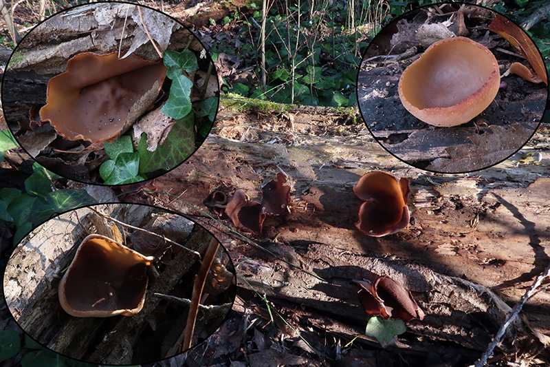 También una de muy abundante cubriendo toda la longitud de un tronco tumbado, la Peziza varia
