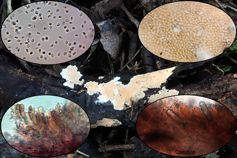 Y para terminar, todo un clásico, con himenio hydnoide, el Steccherinum ochraceum
