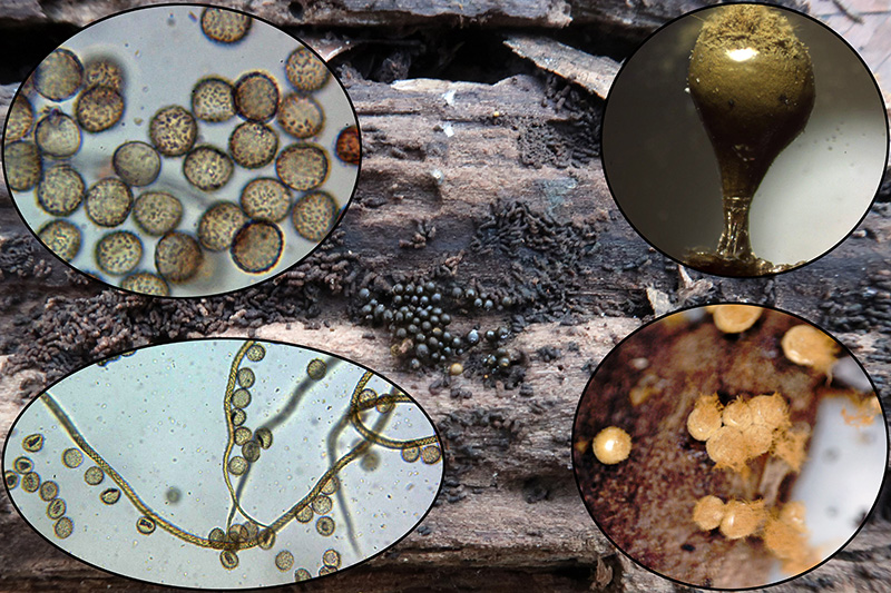 También un Mixomiceto, cercano a la Trichia decipiens, probablemente la Trichia decipines var. olivacea (por las marcadas verrugas esporales)