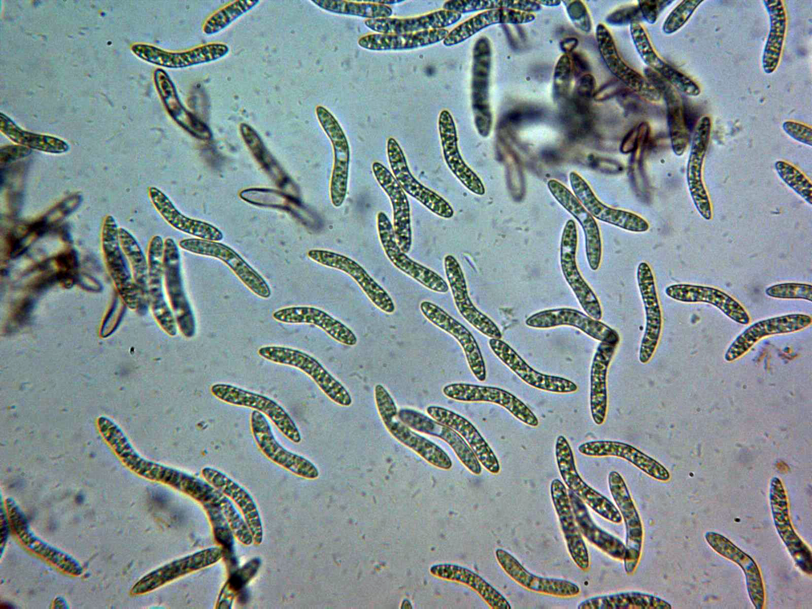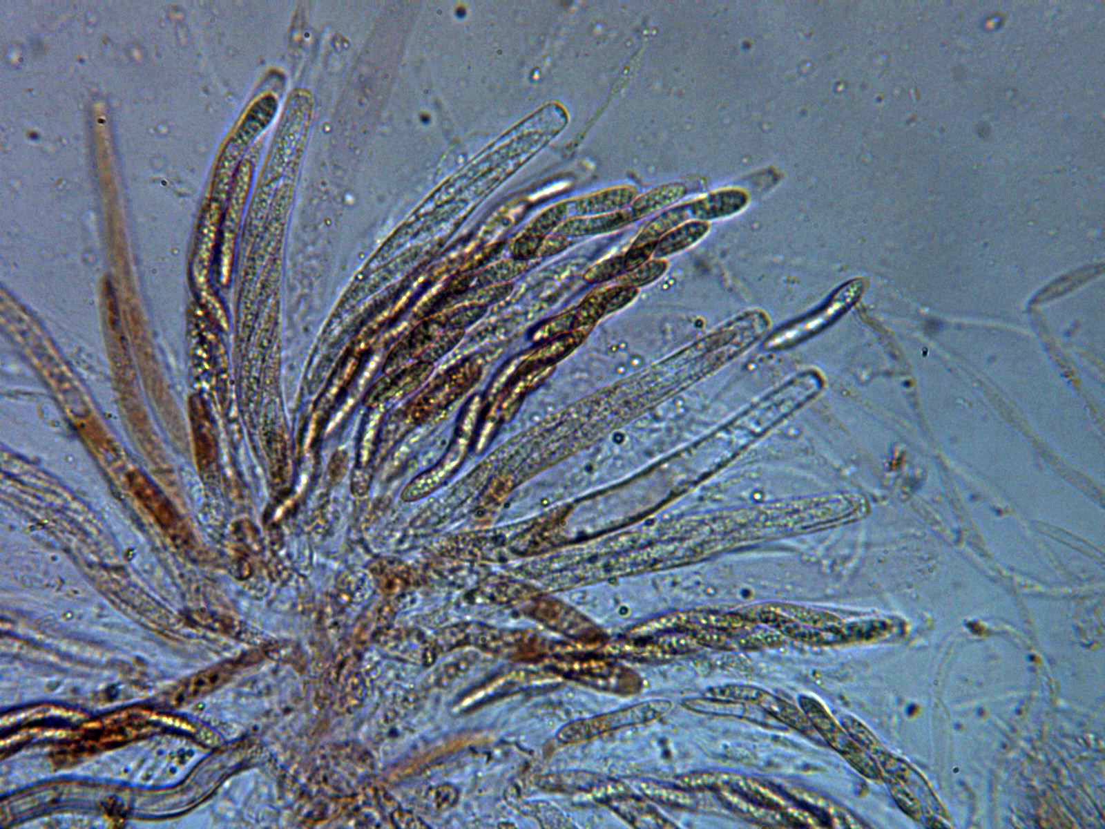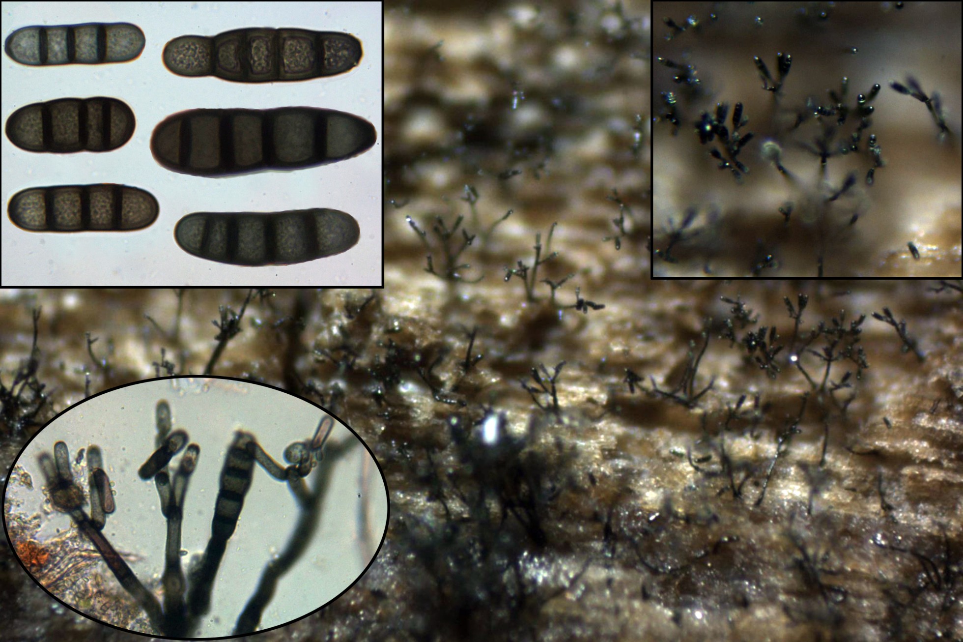 Muy diminutas fructificaciones arbóreas, con conidióforos ramificados y con un solo conidio en cada terminal. Las hifas conidiógenas de color marrón y septadas. Los conidios con 3 o 4 septos muy marcados de color marrón oscuro y con unas medidas de (34.6) 36 - 58.7 (63.7) × (12.2) 12.23 - 15.8 (18.8) µm