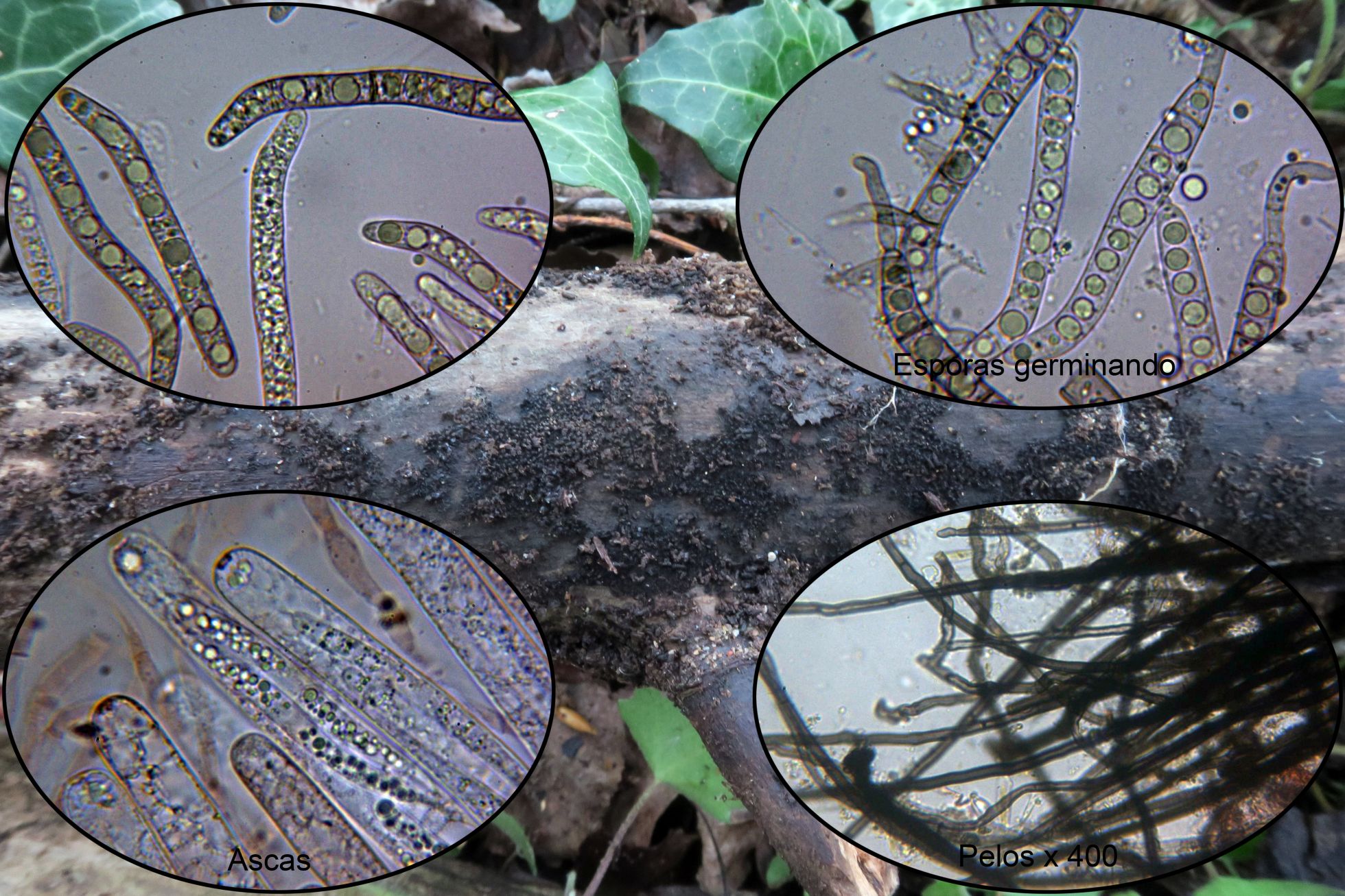 Y otra de muy abundante que me encuentro con frecuencia, la Lasiosphaeria hirsuta, actualmente Lasiosphaeris hirsuta (Es el quinto estudio que realizo a la misma)