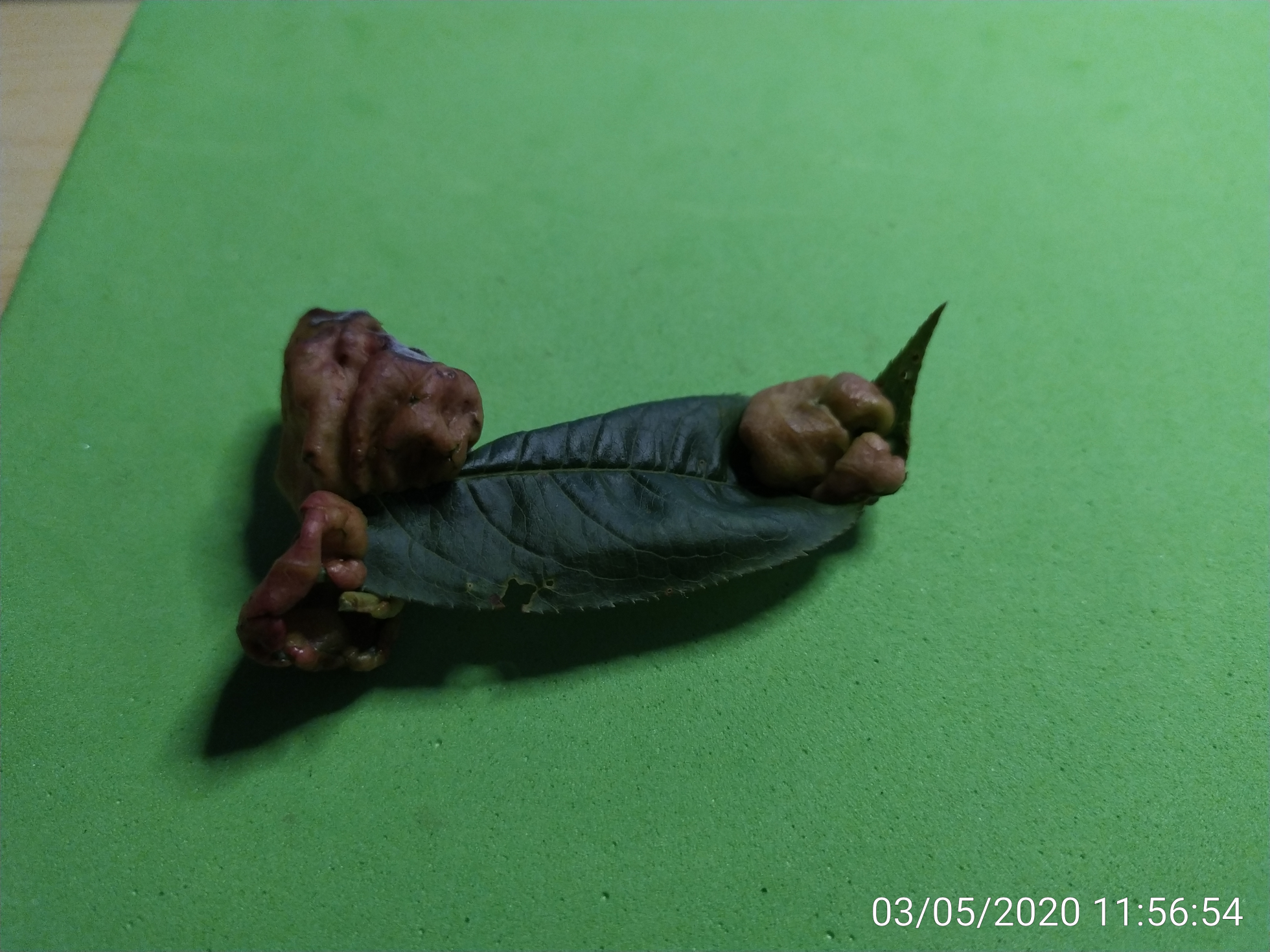 en un arbol de pessegueiro, (galicia), un melocotonero de frutos pequeños; estaba infestado (aparentemente) por taphyrina deformans, asi que intente verificarlo;