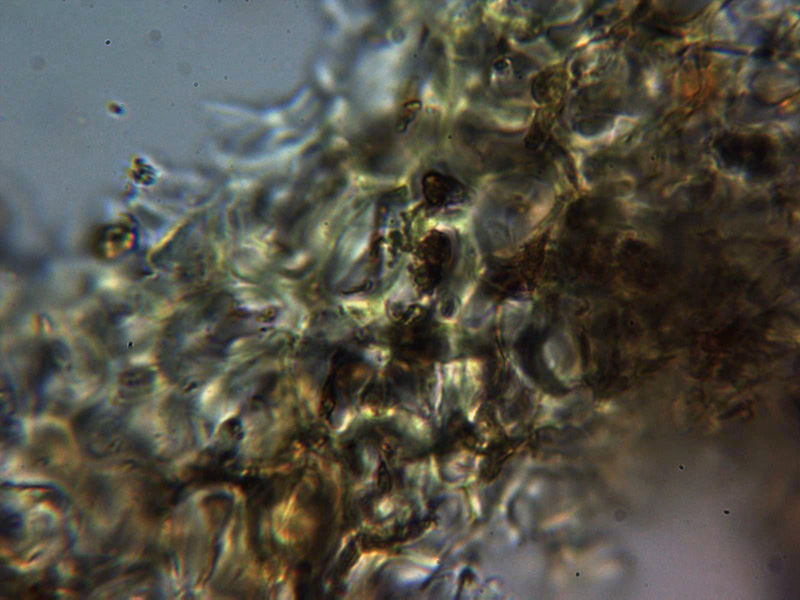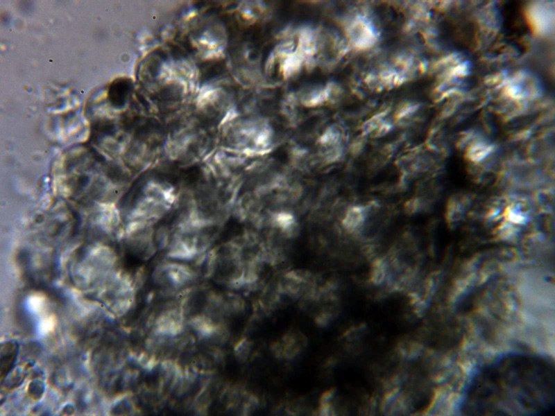 Excípulo externo compuesto por hifas mas o menos globosas con unas medidas de 11.7 a 17.9 µm.