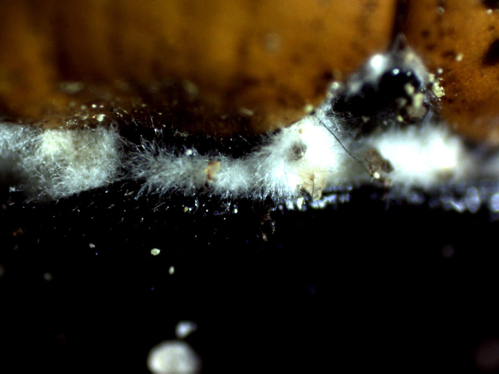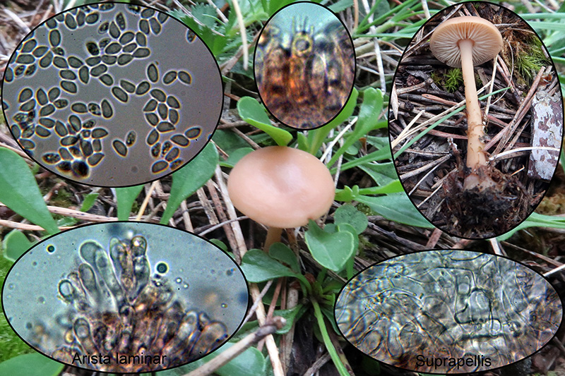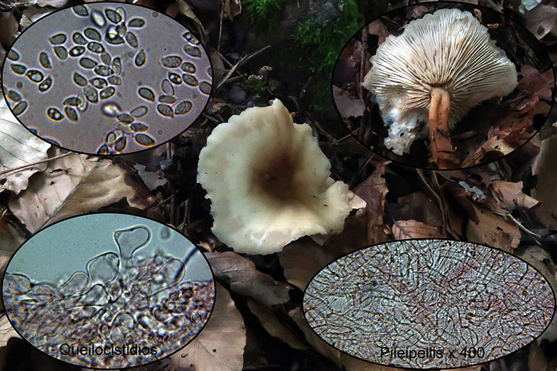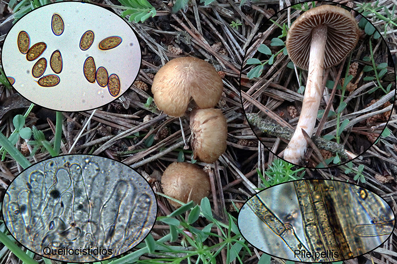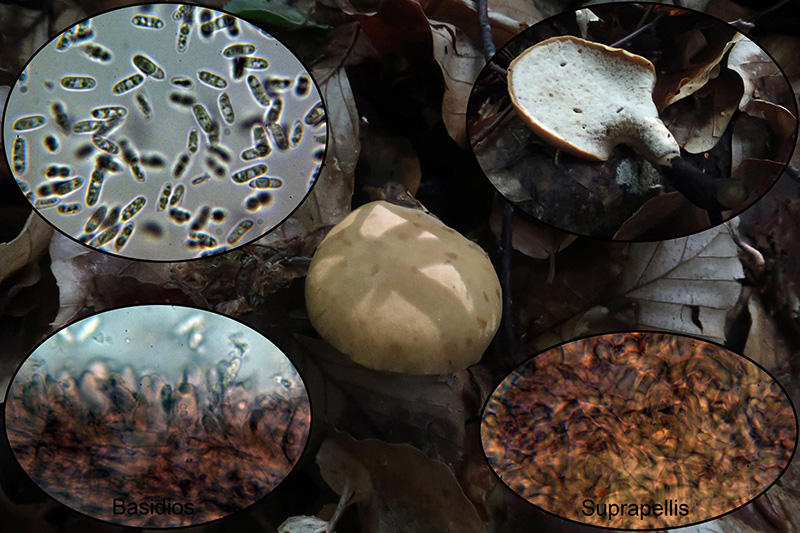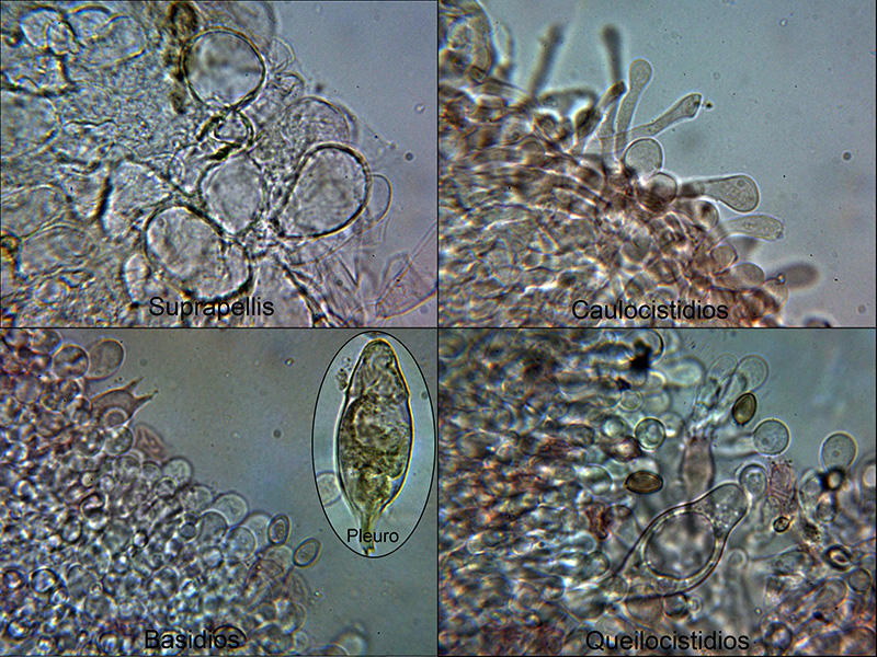 Con cutícula celulósica, con hifas entree globosas y piriformes y grandes cistidios con contenido que se tiñe ligeramente de amarillo con el Rojo Congo.